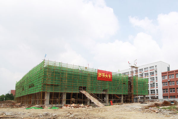 根据我校“十二五”学科专业发展规划和本科教学工作合格评估要求,集团公司于2012年5月投资兴建实验实训楼和图书馆扩建工程。此次封顶的实验实训楼建筑面积达18560平方米,共6层,总高21.9米,7度抗震设防,多种类型的实验室充分满足教师日常实践教学和学生实验动手能力的需要。