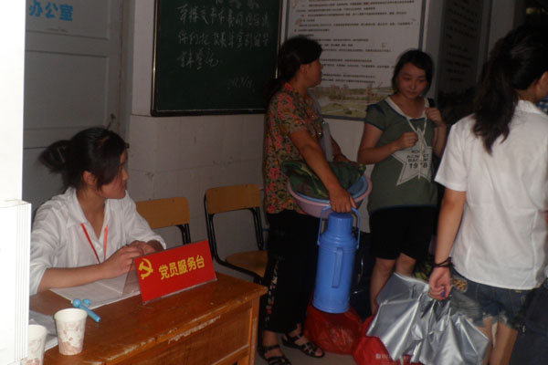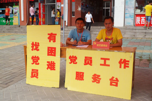 在校北大门和各新生宿舍楼前,都设置带有“党员工作服务台”和“有困难找党员”口号的服务台,党小组成员轮流值班,主要接受新生关于党团相关问题的咨询工作,同时还对新生进行安全教育,让新生熟悉学校的学习环境、生活环境,帮助新生树立职业规划意识,为以后学习、生活打下良好基础。