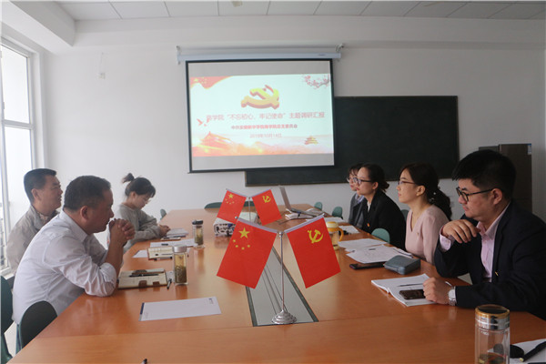 在调研座谈会上,徐志凤、刘冬艳向调研组汇报了商学院前期围绕“不忘初心 牢记使命”主题教育实施情况,分别从主题教育的部署宣传、主题教育工作在立德树人方面的具体举措、大学生思政素质教育、商学院“121”工程开展现状、“121”工程建设中存在的主要困难和亟待解决的问题以及下一步工作计划等方面进行了介绍。陆克斌、翟荣兵向调研组介绍了商学院党总支关于“不忘初心 牢记使命”具体的学习情况、对目前存在的问题提出了对应的措施和建议。教师代表围绕本职岗位工作中的困难和不足向调研组作了详细介绍并提出了解决方法。