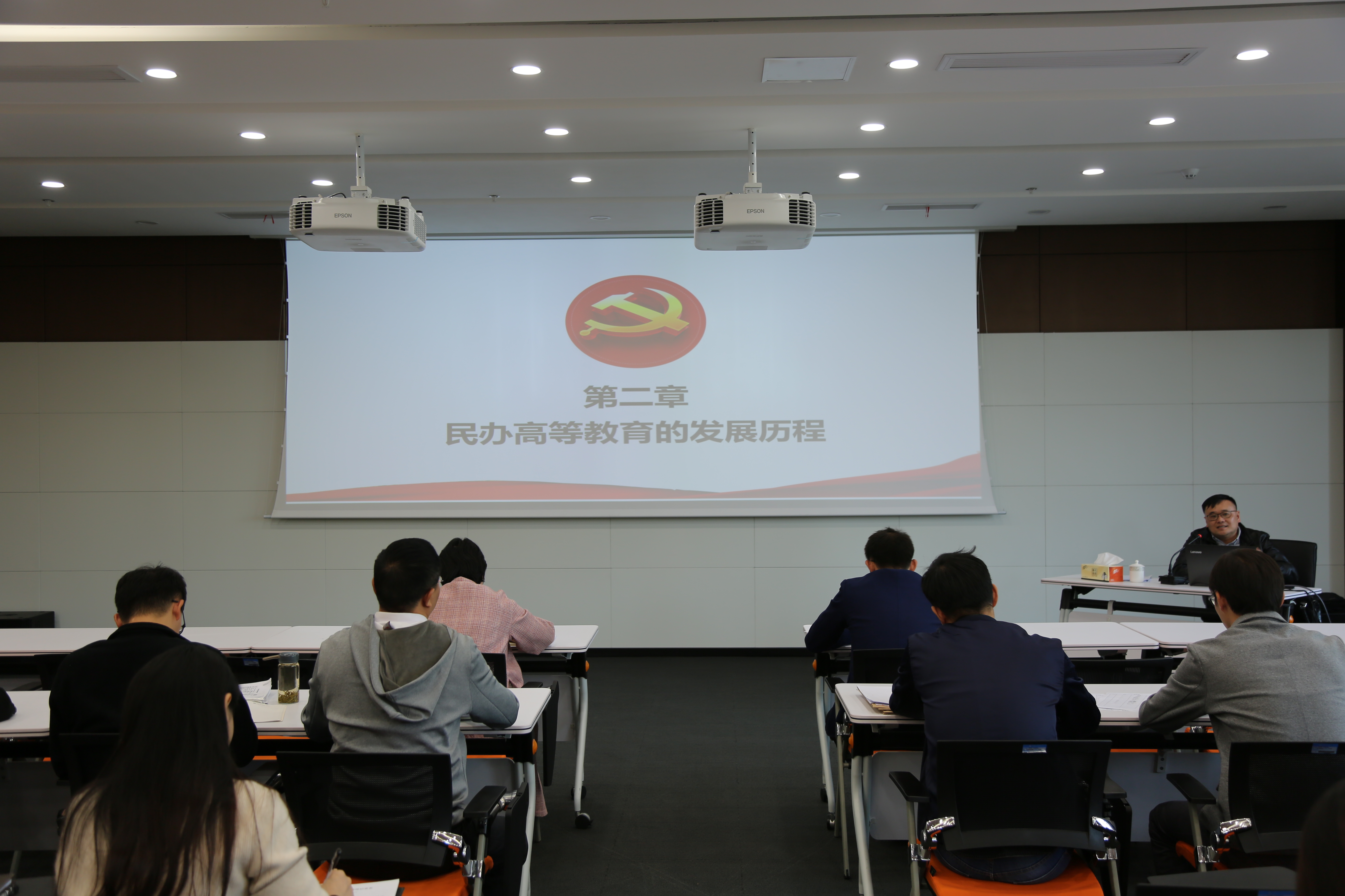 课上,王孝武进一步强调了共产党员的“使命”和“担当”,他通过传达学习贯彻习近平总书记在全国教育大会上的讲话精神,带领大家重温民办高等教育的发展历程,来深入诠释了民办高等教育的使命与担当。