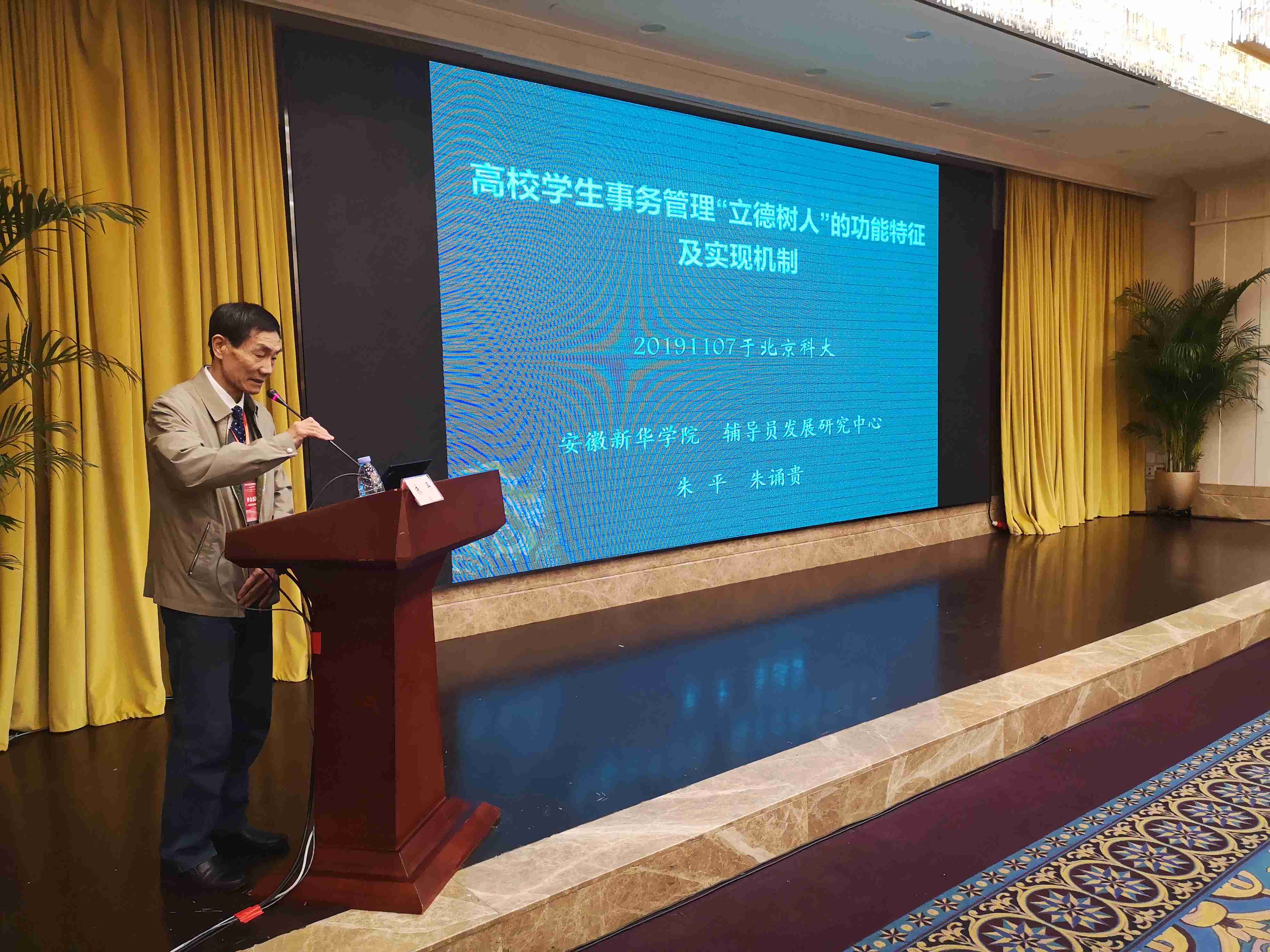 我校朱平教授在大会上做了《高校学生事务管理“立德树人”的功能特征及实现机制——从系统的结构功能关系视角的考察》专题学术演讲,提出了在立德树人的大育人系统中,要加强学生事务管理子系统,阐释了学生事务管理系统具有方向性、动力性、直接性、丰富性、可迁移性、可持续性等特征;具有促进学生自主学习、实践学习、道德学习、情感发展、个性发展等不可替代的独特功能;指出通过制度建设、完善育人机制等多项举措,扭转“重智育轻德育、重教书轻育人、重科研轻教学”等育人偏差。