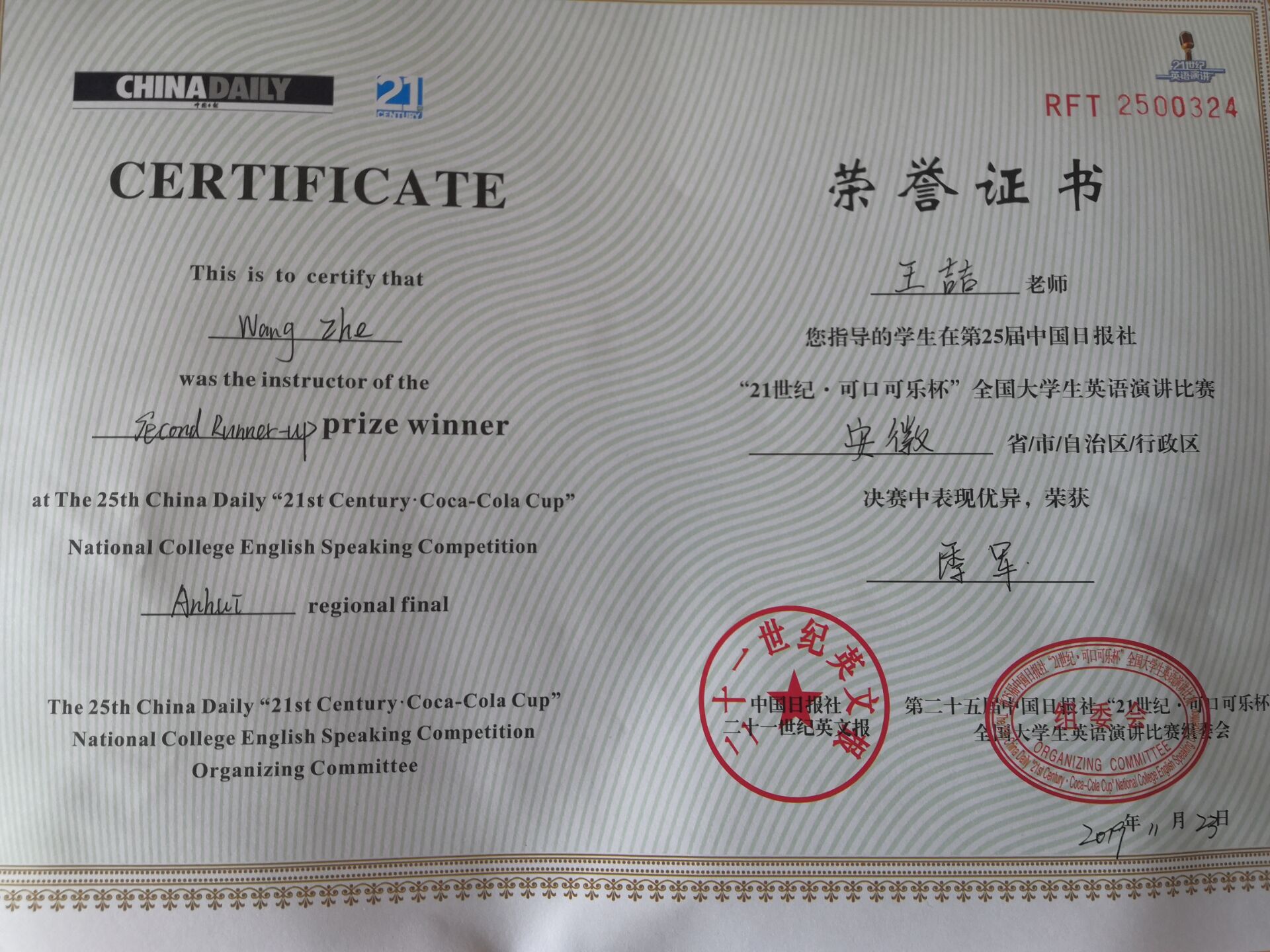 安徽新华学院学子在第25届中国日报社21世纪杯全国大学生英语演讲大赛中荣获安徽省季军