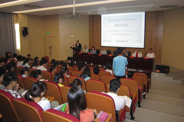 本网讯(通讯员 储金华)9月22日上午,安徽MBA企业家大学生公益职前培训系列大讲堂在我校学术报告厅成功举办。安徽工商联MBA联谊会主席司马文龙、常务主席张学武、副主席李文斐、肥西县人力资源管理和社会保障局副局长王昊、合肥荣事达集团人力资源部部长李建华、合肥神林电子有限公司经理李小珍、我校电子通信工程学院副院长卢胜出席讲座。学校160余名2013届毕业生聆听了讲座。
