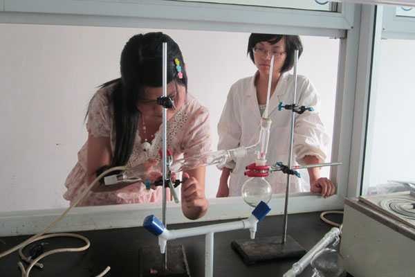 本次竞赛围绕与学生专业技能密切相关的《药物化学》、《药剂学》和《药物分析》三门课程展开,分设专业知识竞赛和实践技能考核两个项目。实践技能考核方面,参赛选手需要完成13个基础实验和3个综合实验;专业知识抢答环节,51名参赛选手积极踊跃。抢答的题目以书本为基础,巧设探索性,既具科学性又有趣味性,如:你认识“水”吗,对它的结构知道多少?治疗糖尿病的胰岛素凝胶智能药物实现智能化的原理是什么?什么叫手性拆分法?“盲法试验”中的双盲法和单盲法是什么意思?