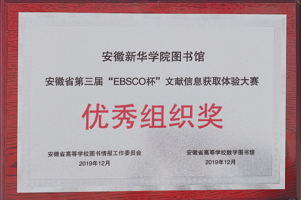 安徽新华学院图书馆获得第三届“EBSCO杯”文献信息获取体验大赛优秀组织奖