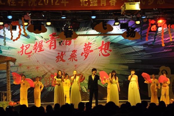 最后,晚会在学生会的舞蹈《在舞倾城》中缓缓落下帷幕。结束后,学院的领导、老师走上舞台,与全体演员们合影留念,晚会取得了圆满成功。