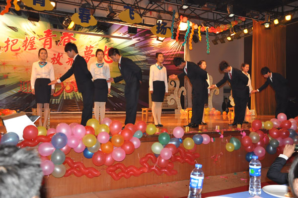 整台晚会给观众们呈现了形式多样,内容丰富的演出。既有高质量、上层次的节目,也有自娱自乐,能引起大家共鸣的节目;既有体现年轻人四射激情的劲爆节目,也有寓教于乐,让人颇有感触的节目。演员们的精彩表演还吸引了许多其他学院的同学来到大礼堂观看,场上不时爆发出阵阵喝彩。