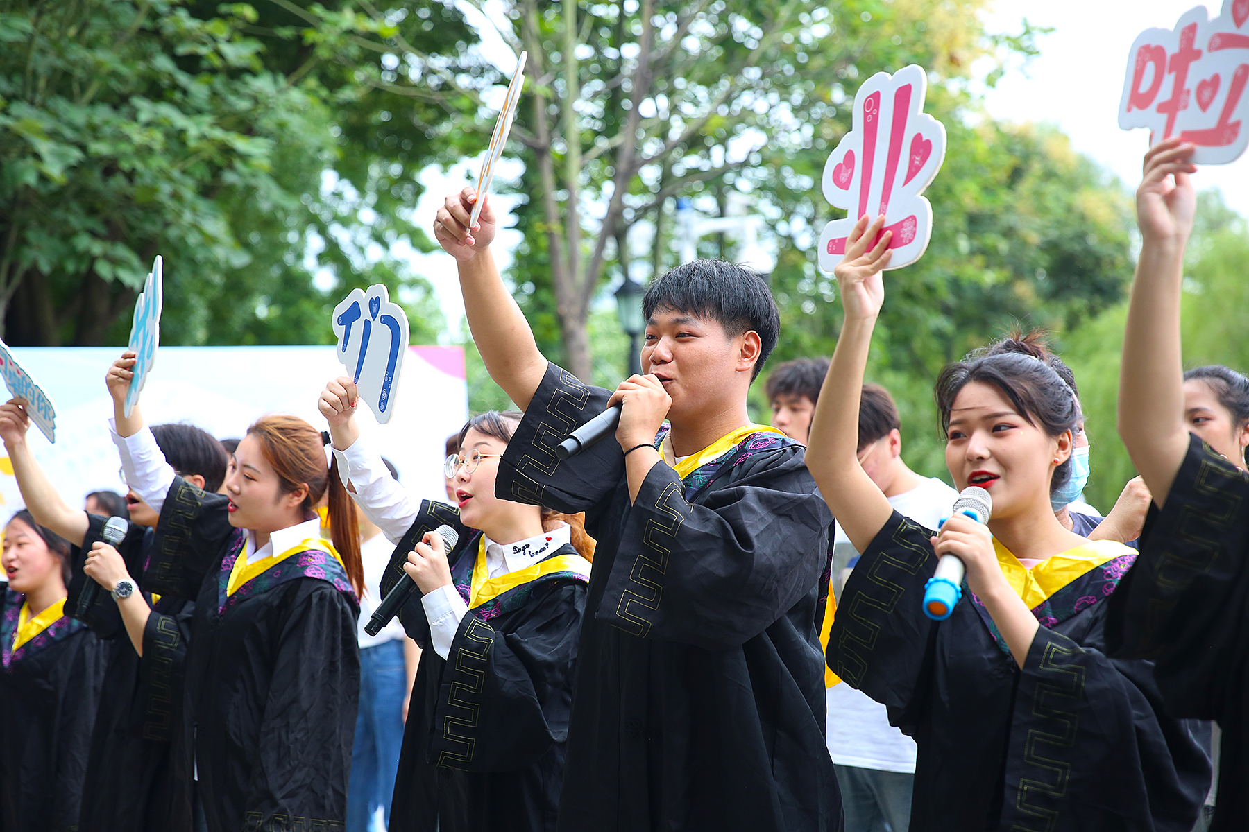 “我怕我没有机会,跟你说一声再见,因为也许就再也见不到你;明天我要离开,熟悉的地方和你,要分离,我眼泪就掉下去……”当歌曲《再见》的音乐响起,全场师生一起合唱。校艺术团、街舞社、松欧音乐社以精彩纷呈的演出送别学长学姐们……
