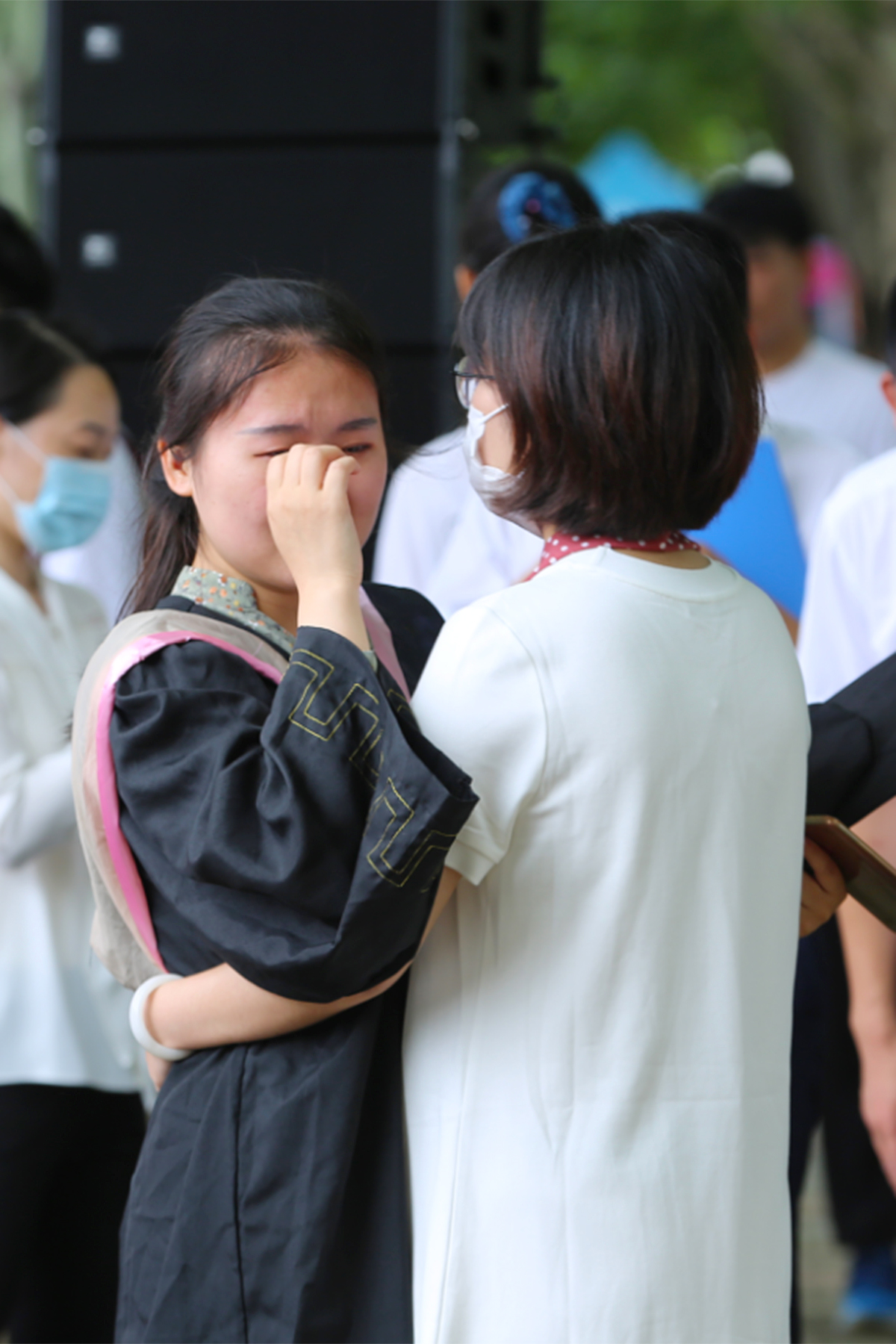典礼结束,校领导、教师和辅导员老师目送毕业生离场,与毕业生挥手告别。光荣与梦想,欢笑与泪水,激动与不舍,万千心绪都交织在了这最后一次的毕业相聚。