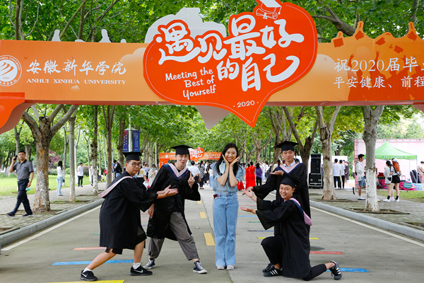 突如其来的新冠疫情注定让今年的毕业季不同寻常。为了让毕业生毕业不延期,我校自二月底开启在线教学,从“云课堂”、“云就业”到“云答辩”,多措并举确保学生顺利毕业。新华学子在高质量地完成毕业季的学业之外,同时以志愿服务等多种形式投身抗疫第一线,展现了华园青年的责任与担当。在这个特殊的毕业季,我校将毕业典礼从大礼堂搬到了如琴湖畔,暖心的彩虹地贴、毕业打卡点、手举牌……让毕业生们感受到了满满的仪式感。