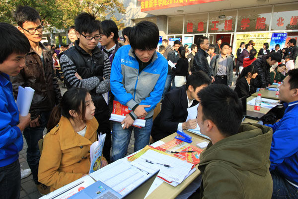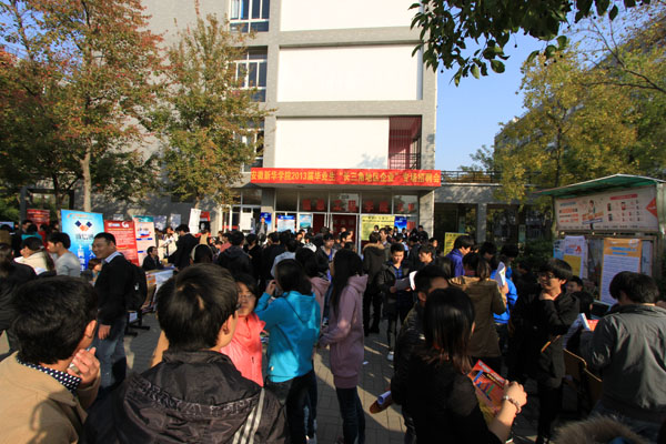 本网讯(通讯员 祝静静,摄影 陆如海)11月14日下午,我校2013年长三角地区专场招聘会在信息工程学院教学楼前顺利举办。各二级学院2013届毕业生积极应聘,寻找合适自己的工作单位。