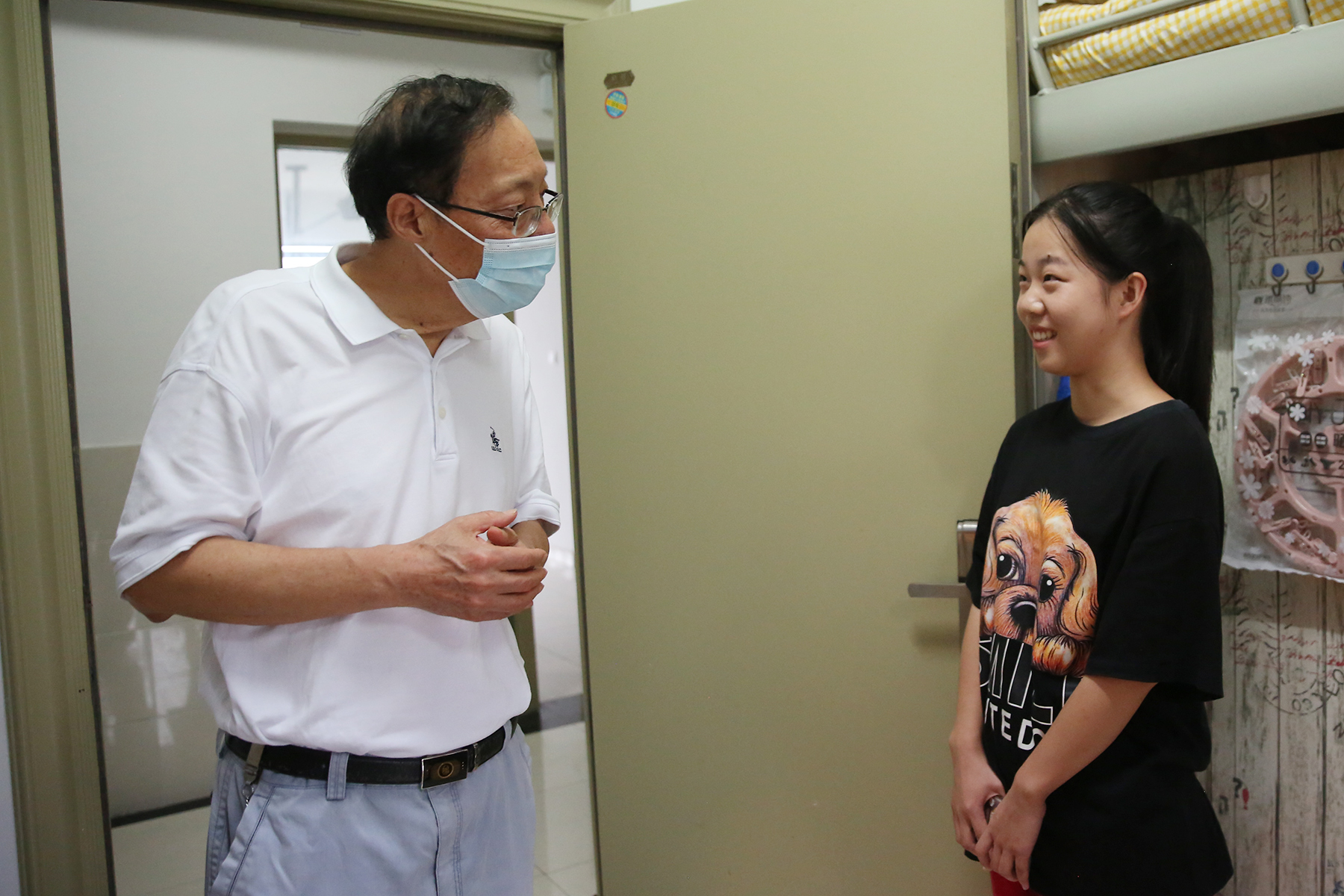 在艺术学院的学生公寓,石校长对同学们来到新华园学习表示欢迎。他仔细查看了室内环境、生活设施,并叮嘱同学们,一是要学会团结,大家相聚这里是难得的缘分,遇到问题要互相帮助,成为彼此的依靠,要学会包容,积极处理问题;二是要提升安全意识,谨防电信诈骗,尤其是女生们更要提高警惕,如有问题及时和辅导员老师沟通。
