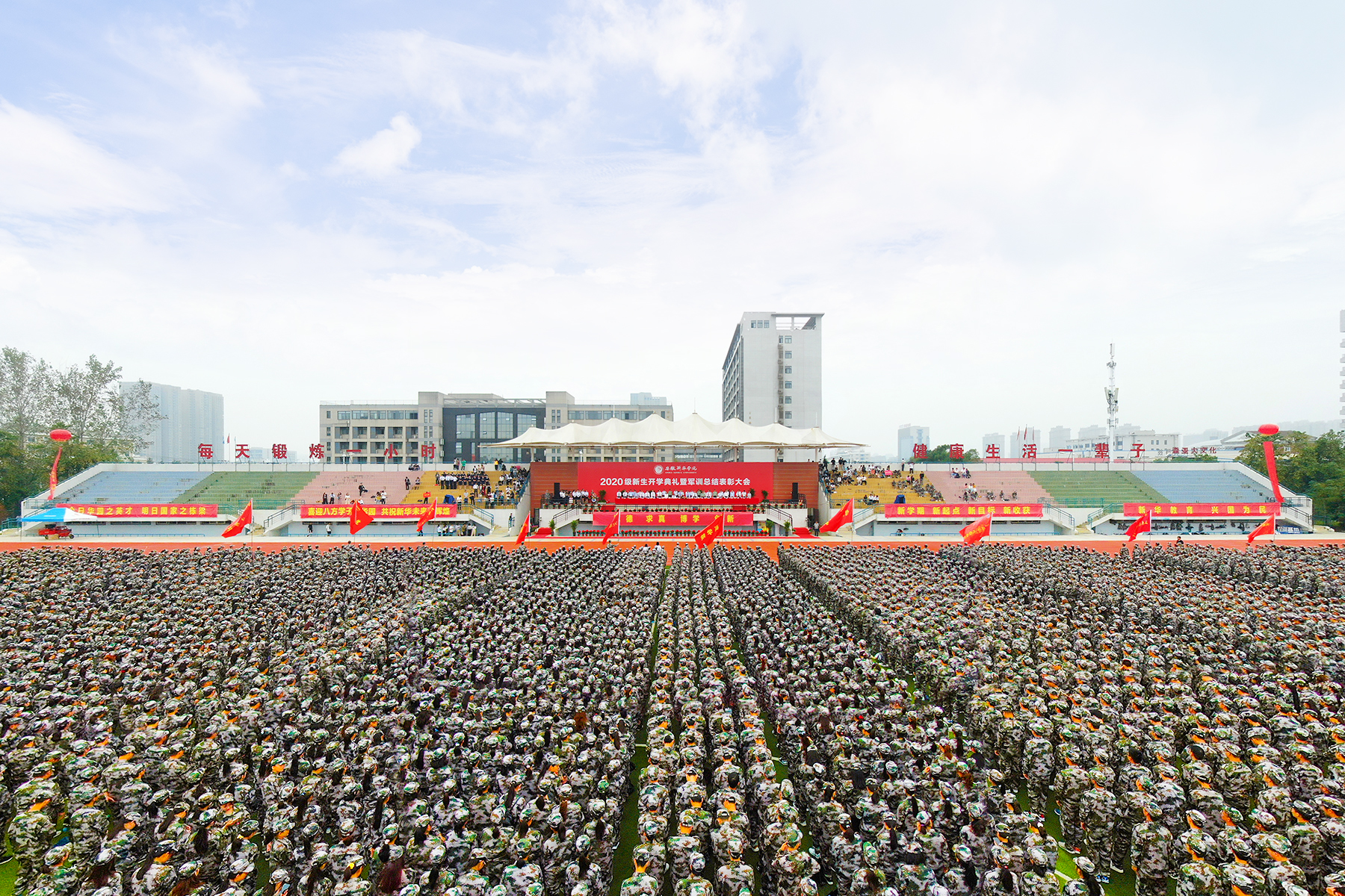 我校举行2020级新生开学典礼暨军训总结表彰大会