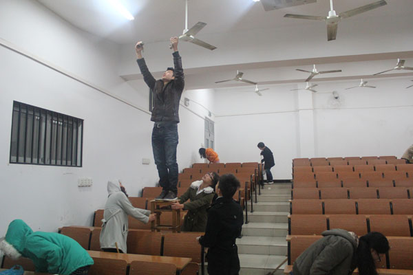 本网讯(记者 哈静)11月21日下午,我校全体非毕业班党员和部分发展对象在各二级学院党员教师的带领下,集体在学校公共教学楼内展开了义务劳动。
