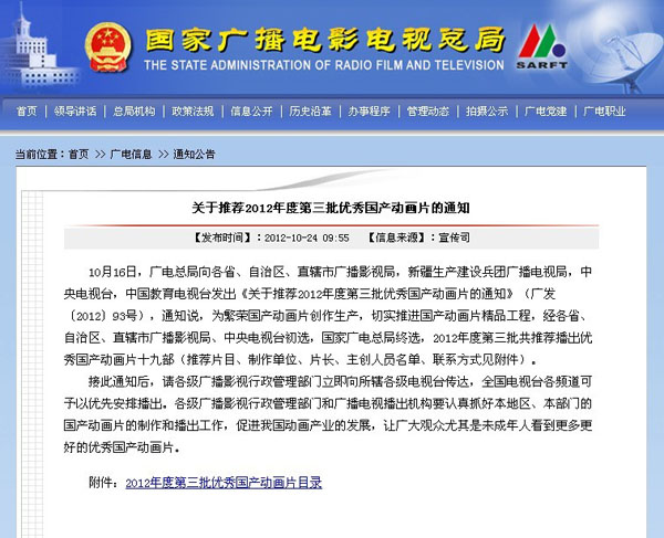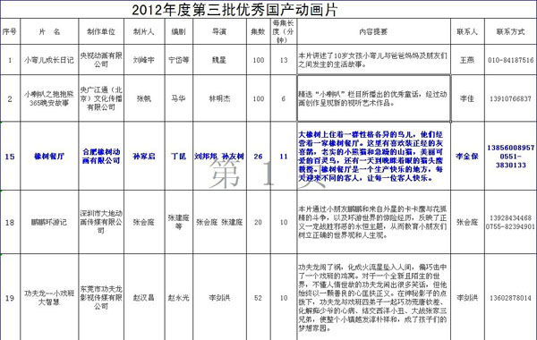 10月16日,国家广电总局向各省、自治区、直辖市广播影视局,新疆生产建设兵团广播电视局,中央电视台,中国教育电视台发出《关于推荐2012年度第三批优秀国产动画片的通知》,经各省、自治区、直辖市广播影视局、中央电视台初选,国家广电总局终选,2012年度第三批共推荐播出优秀国产动画片19部,我校动漫学院校企合作项目成果《橡树餐厅》名列其中,是我校校企合作的又一成果。