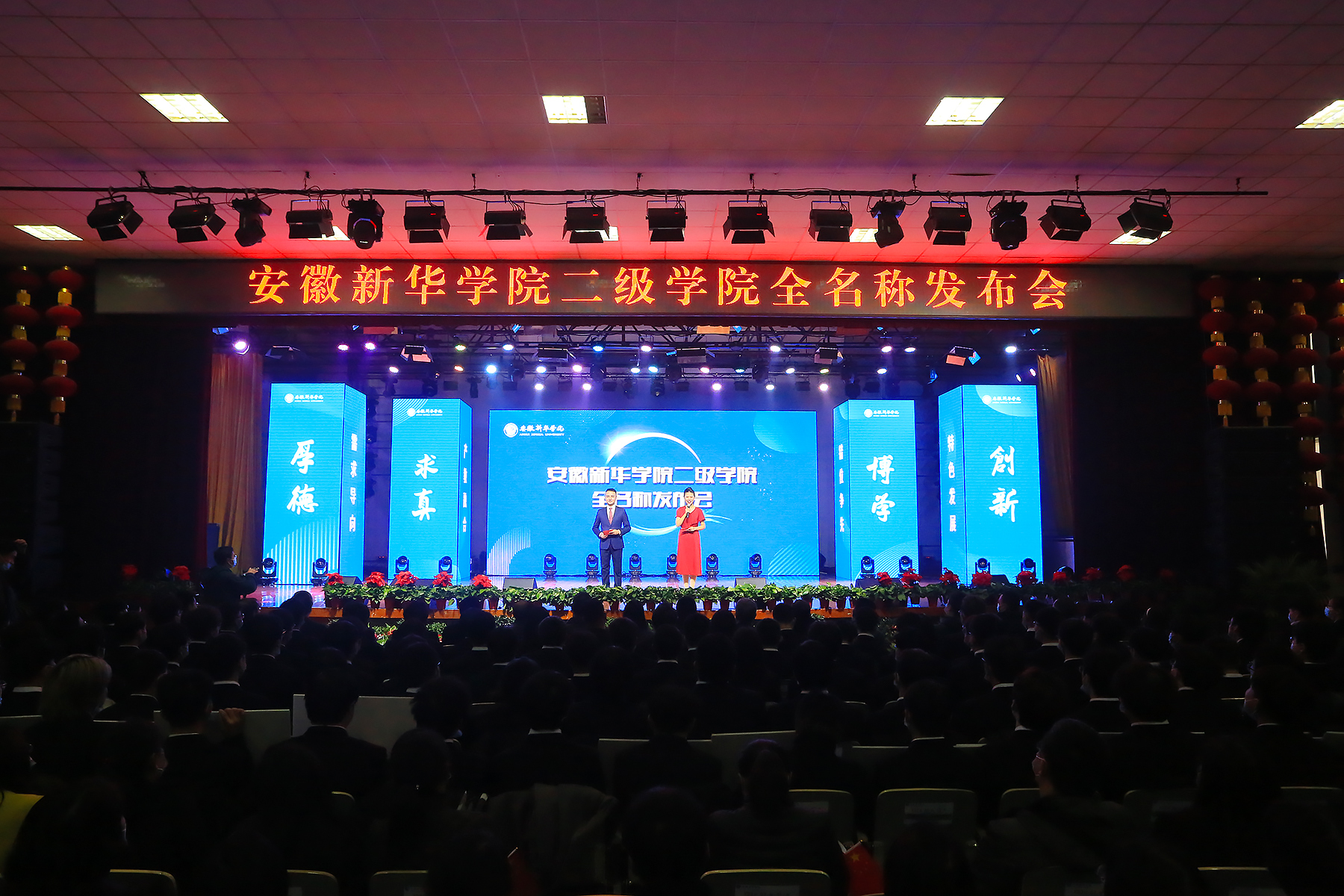 副校长方纯洁、大数据与人工智能学院院长吴建国教授、城市建设学院执行院长邵玲及优秀师生代表来到舞台中央,共同开启大屏,12个二级学院名称正式亮相,在场的全体师生一起见证了这一神圣时刻。