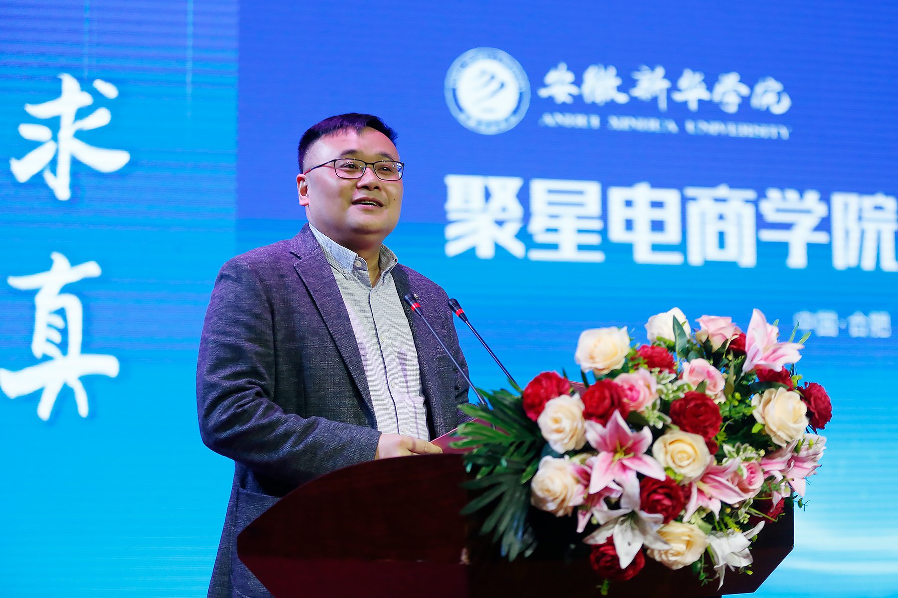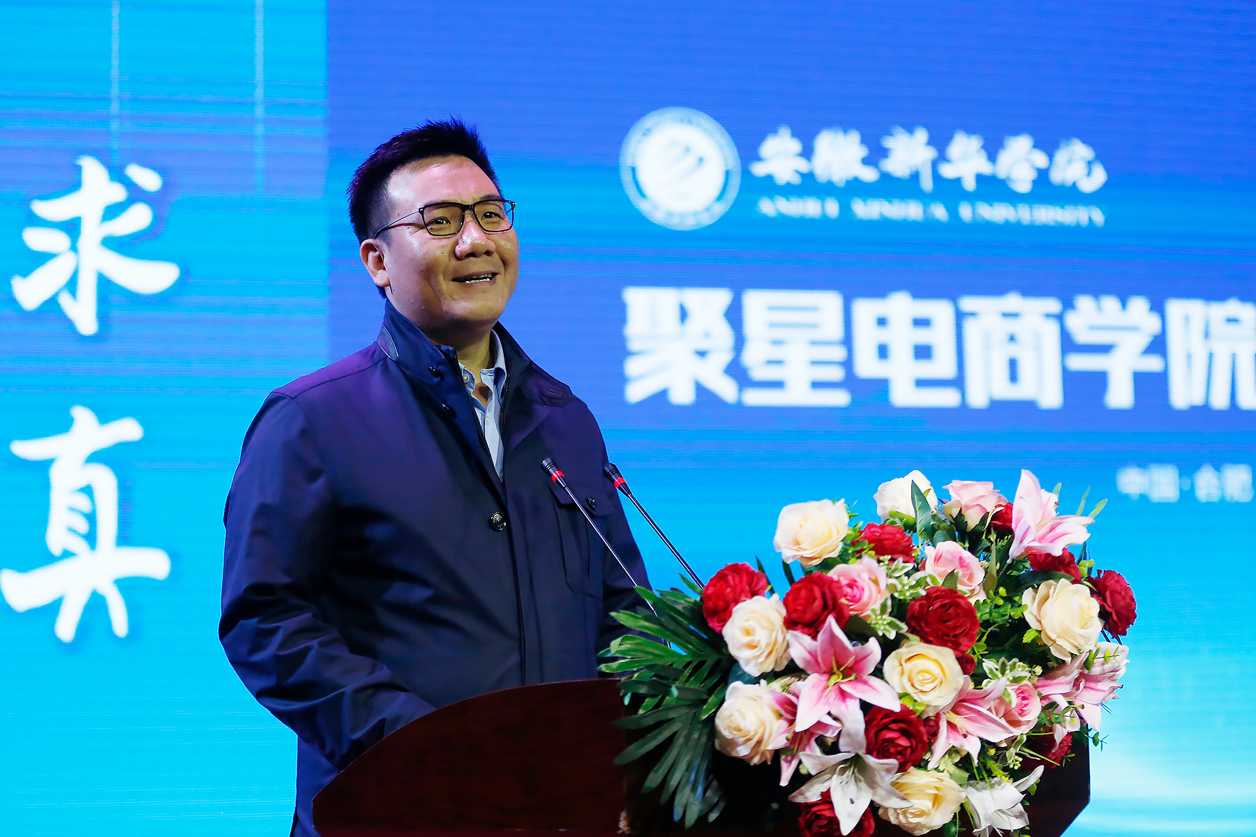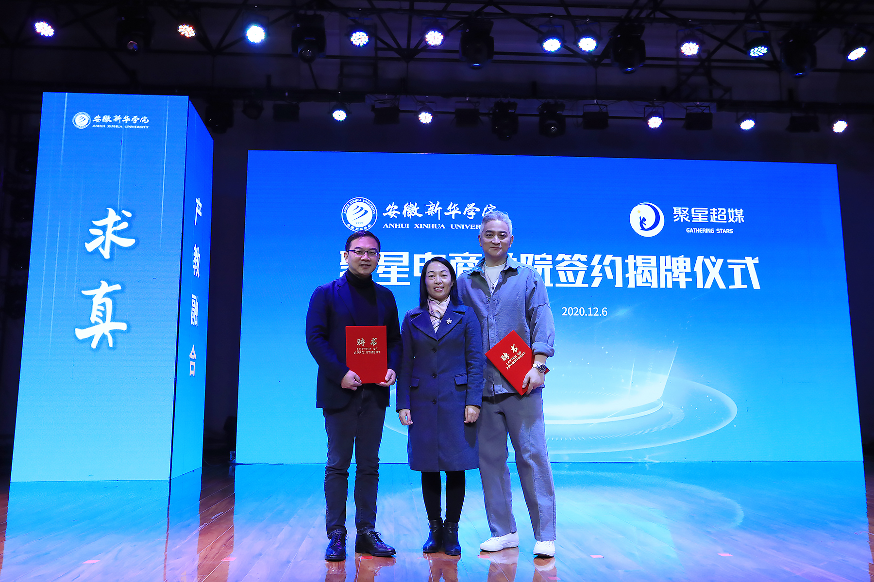 聚星超媒职业导师、知名主持人汪涵以视频致辞的形式,向我校聚星电商学院正式签约成立送来祝福。他表示,直播其实是一件非常专业的事情,它需要优秀的专业人才来支撑,未来大家可以在聚星商学院学到最专业的知识。