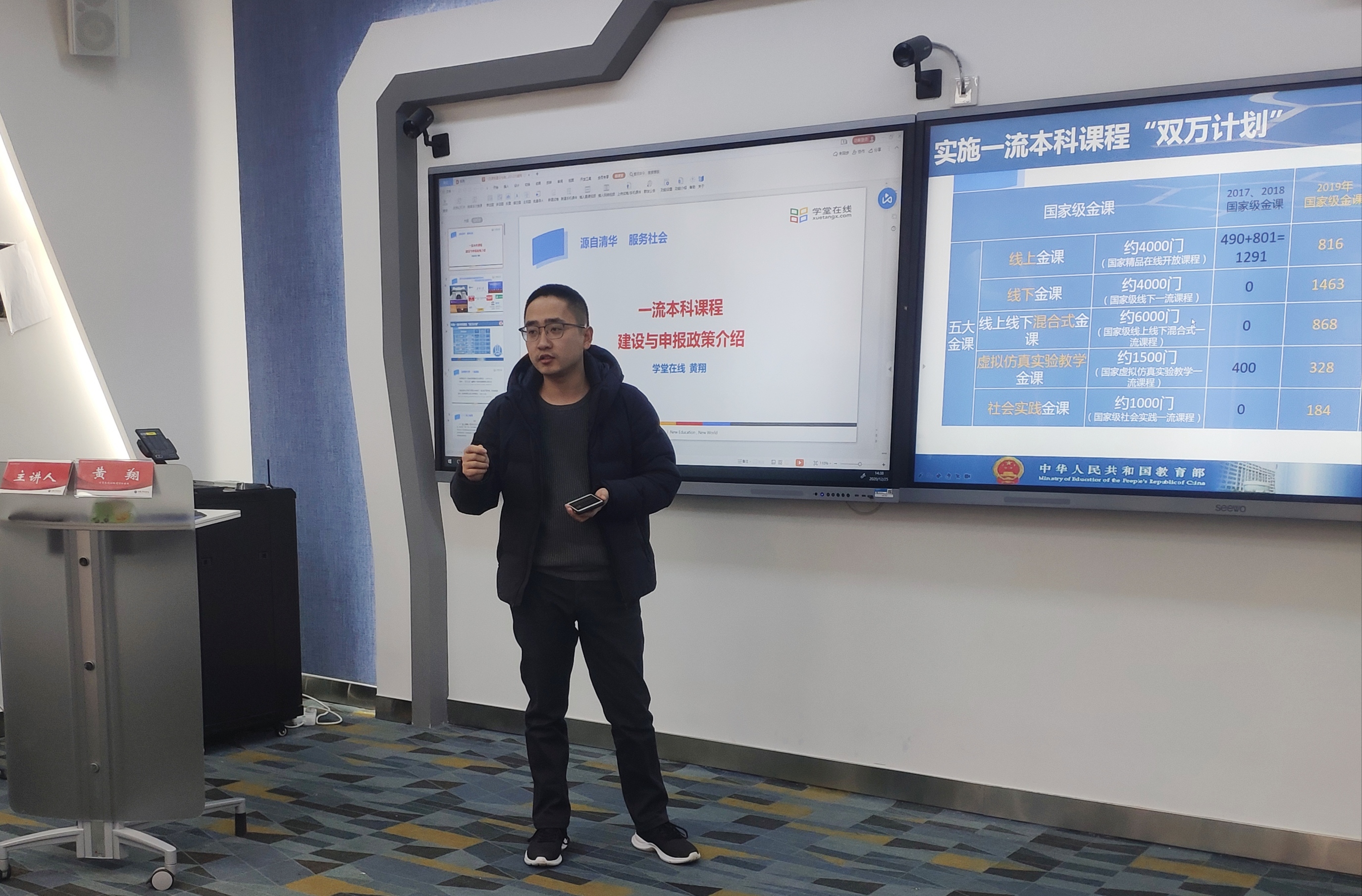 本网讯(通讯员:冯雪峰)为贯彻落实《教育部关于一流本科课程建设的实施意见》,提升教师课程建设与课程改革能力,推进一流本科课程建设,提高人才培养质量,12月25日下午,我校在教学10号楼智慧教室举办了第一期一流本科课程建设专题培训会。各教学单位预申报国家级一流本科课程的教师参加了此次培训。