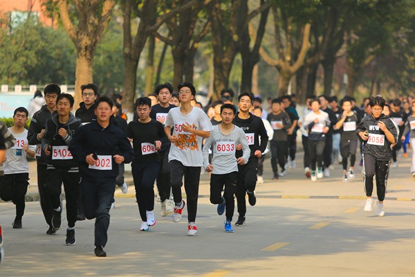此次比赛由通识教育部主办,体育教研室和体育俱乐部联盟承办,各二级学院、宣传处、保卫处、总务处和学生处/团委等相关部门协办,全院千余名学生参加。比赛分男女两组,由祥云体育场北门出发,依次经过厚德路、春晓路、创新大道、新民路、冬青路再回到厚德路,最后从体育场南门进入,完成比赛。比赛开始前,通识教育部主任王士赵进行现场动员,向裁判员和运动员明确了比赛纪律和安全。中午12时30分,男子组比赛开始,随着一声发令枪响,同学们如同离弦之箭般纷纷冲出了起点线。一路上,同学们互相加油鼓劲,奋勇向前。他们持之以恒、不言放弃的拼搏精神,燃爆全场;他们稳健的步伐和矫健的身姿,成为冬日清冷的校园一道亮丽的风景线。