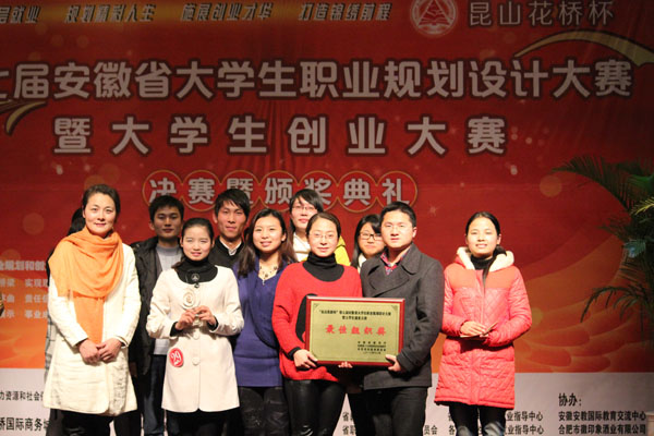 本网讯(通讯员 侯翔)12月15至16日,由安徽省教育厅、安徽省人力资源和社会保障厅、共青团安徽省委主办的“昆山花桥杯”第七届安徽省大学生职业规划设计大赛暨大学生创业大赛总决赛在安徽行政学院举行。我校就业组选手陈永杰和创业组文雅团队分获“安徽省大学生职业规划设计之星(金奖)”和“安徽省大学生创业之星(金奖)”,学校获得“最佳组织奖”。