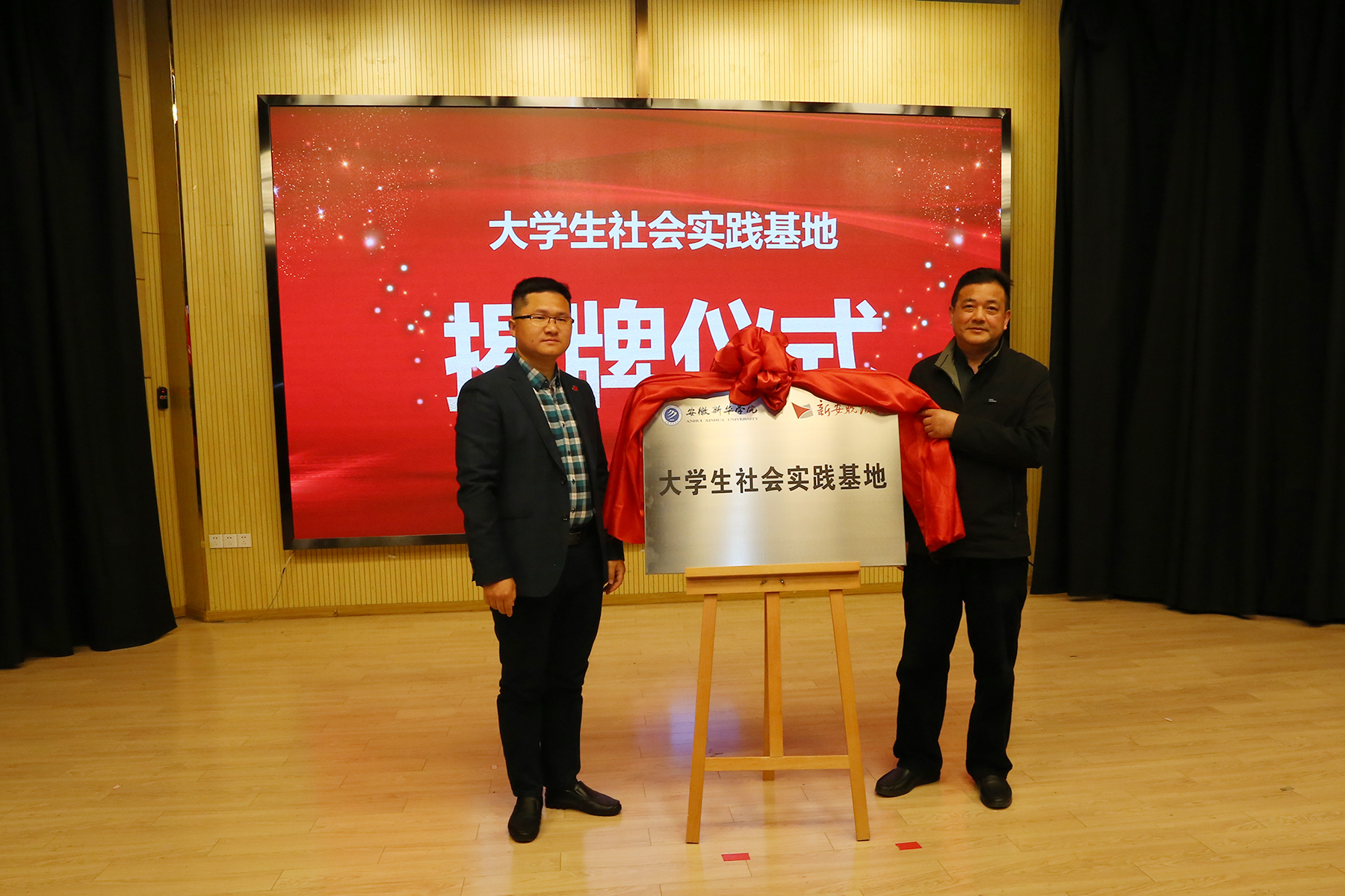 贺佳行、甘社会共同为我校大学生社会实践基地揭牌。