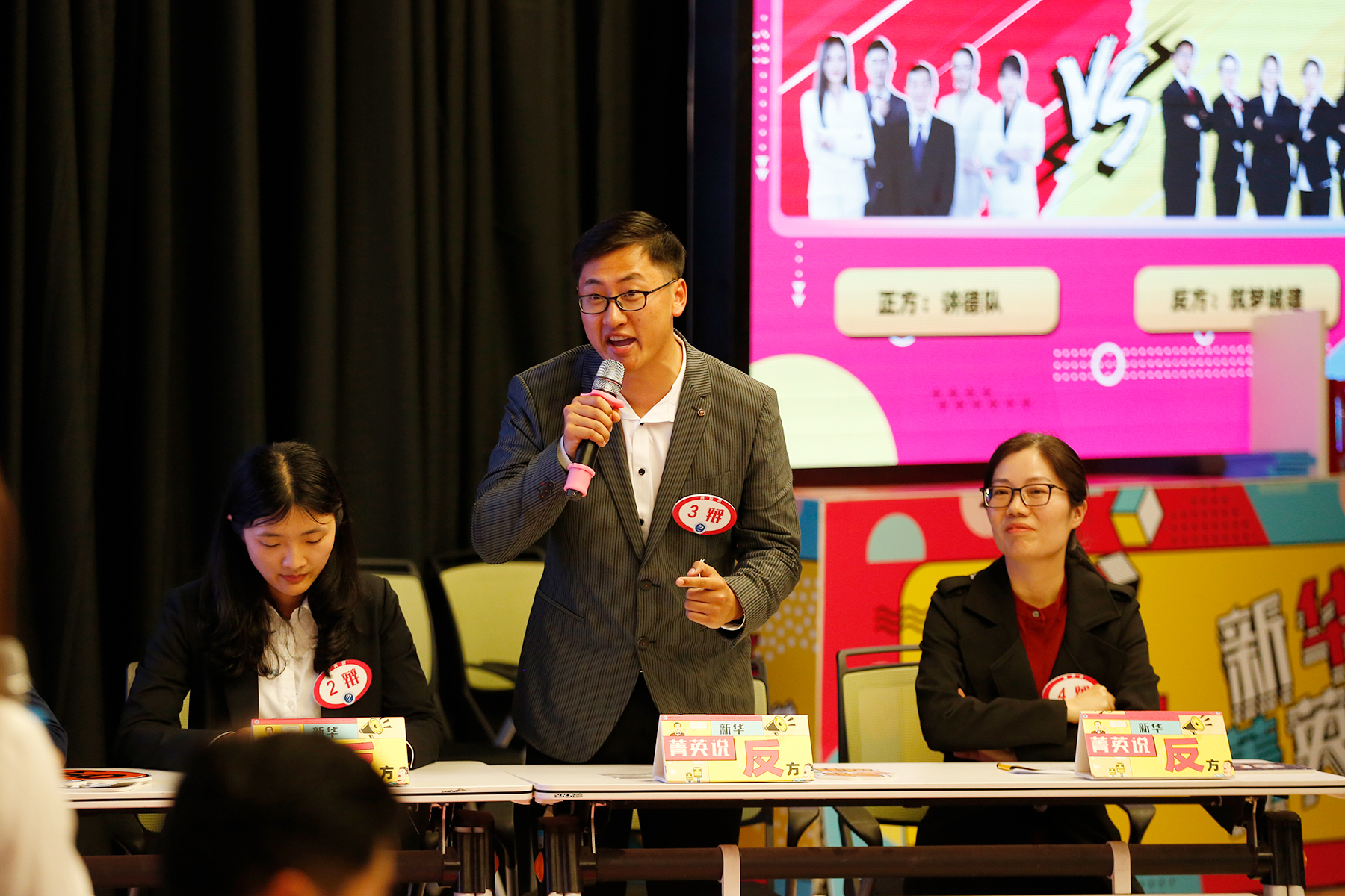 三场比赛结束后,杨磊对此次比赛作了精彩的见评。他充分肯定了双方辩友的出色口才,以及辩题情景剧演绎的创新。“这是一场思想、语言、文化的盛宴。今天只是开始,期待未来在新华看到更加精彩的辩论赛。”