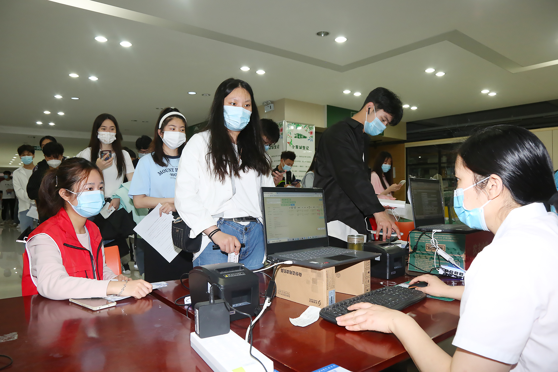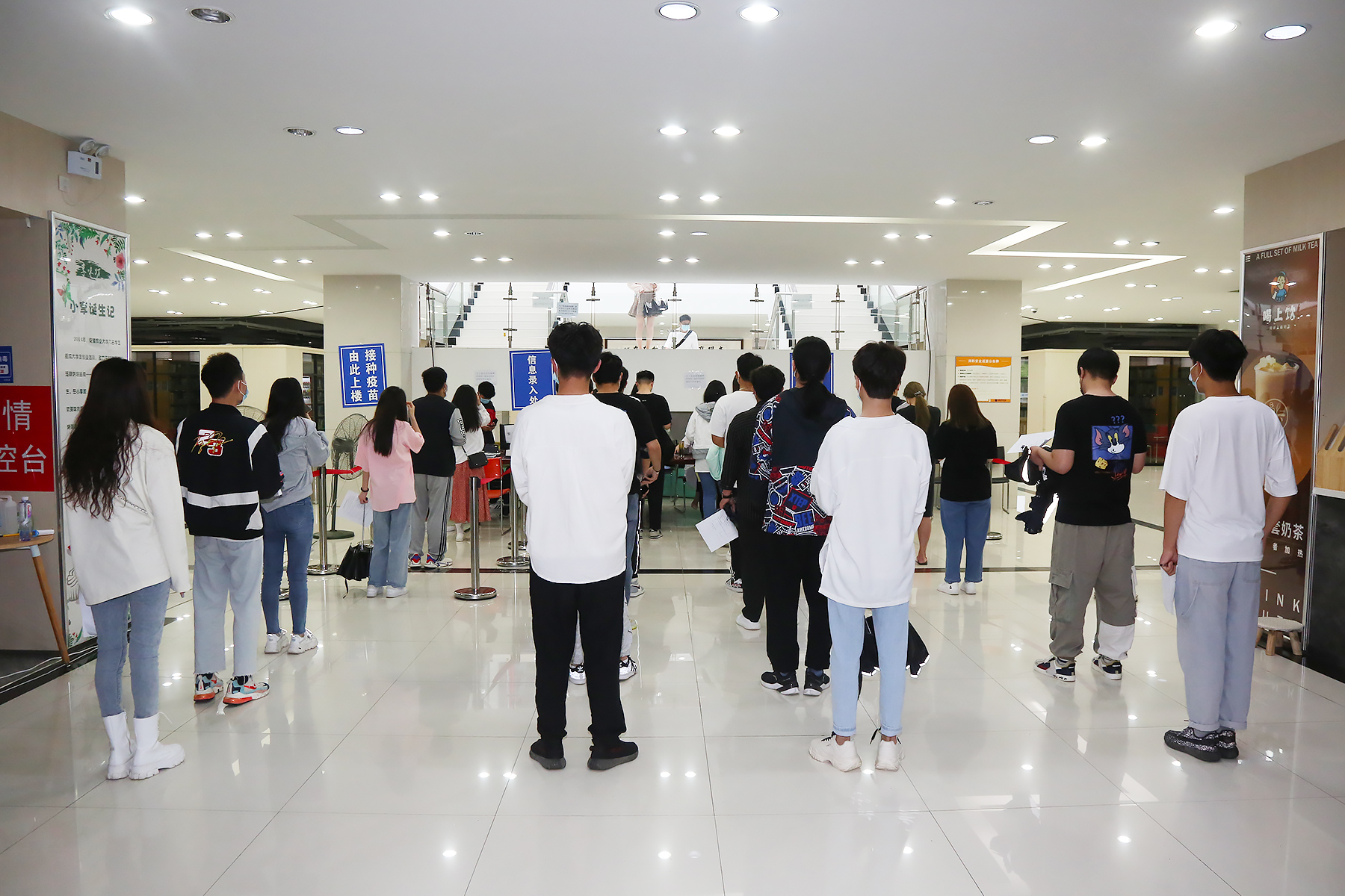 接种工作启动当天,师生们携带身份证,在图书馆北入口有序排队、登记信息,并出示健康码。医护人员认真核对接种者信息,询问近期身体状况,以确认是否具备接种条件。依托电子信息系统,严格落实“一人一苗一码”,实现疫苗全程可追溯。信息录入完毕后,师生跟随志愿者指引前往二楼有序进行疫苗接种、留观等流程。完成接种后,师生在接种留观区等待半小时,无任何不适且扫码填写《完成疫苗接种信息统计表》后方可从二楼南门离开。