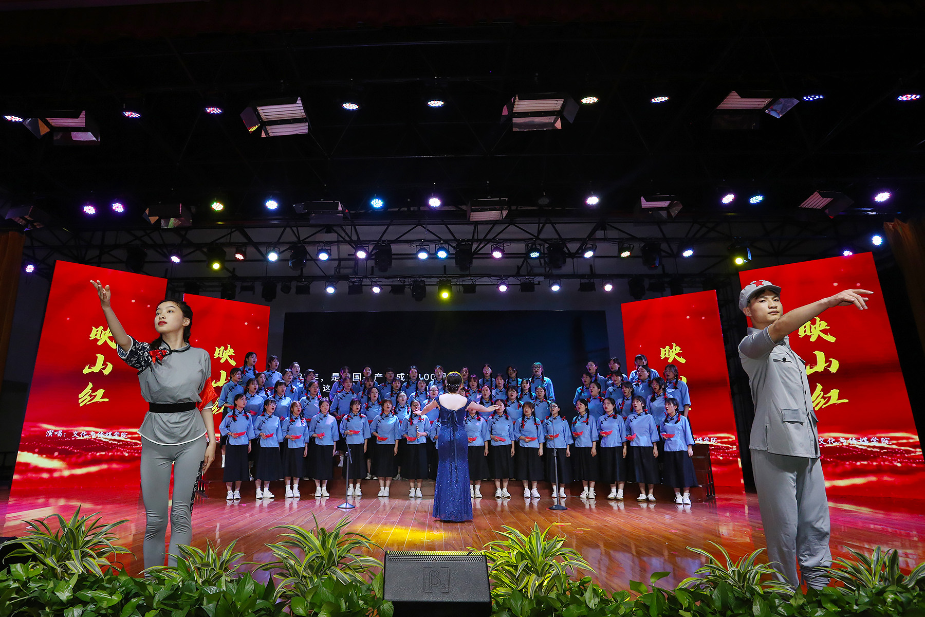“夜半三更盼天明,寒冬腊月盼春风,若要盼得红军来,岭上开遍映山红......”文化与传媒学院饱含深情地演唱《映山红》,在对百年峥嵘岁月的满满回忆中开启第四篇章。