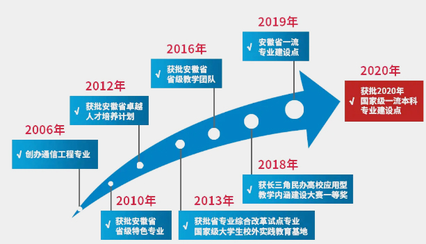 2006年,安徽新华学院正式开办通信工程专业,经过多年的建设与发展,通信工程专业已成为安徽省特色专业、安徽省专业综合改革试点专业、安徽省卓越工程师计划实施专业。2019年获批“双万计划”省级一流本科专业建设点,2020年获批国家级一流本科专业建设点。