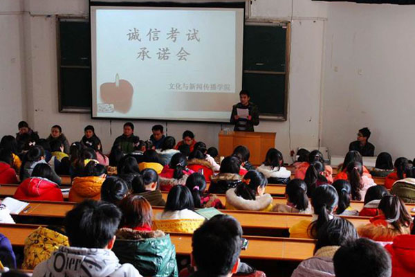文化与新闻传播学院举行了诚信考试承诺大会,学习了学校关于考试的有关规定,要求全院同学在承诺考试承诺书上签字,召开主题班会。要求同学们继续保持优良的考试作风,认真学习积极备考,以最好的状态迎接考试。