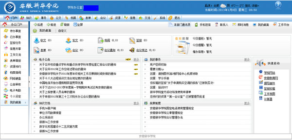 新版办公平台进行了功能需求分析、基础数据收集、软件测试、项目评定、系统搭建、数据录入、特殊功能的二次开发、界面美化、培训学习及试运行测试,目前运行情况稳定。与旧版系统比较,新版办公系统在功能方面强化表单流程及签报等应用,个人及角色权限更加明晰,通过电子化的工作流程简化了之前流程人工复杂的审批过程,只需要发起相应的流程、根据表单填写好内容就可以按照设计好的流程图进行一步步向下流转,直到流程审批结束,提高了行政办公的效率。从发起流程到待办流程、在办监控、流程记录、办结查阅、和效率分析进行闭环管理,并对所有的流程可以进行信息追踪。事务和即时通讯也更加便捷,同时实现门户、项目、知识、子流程、综合办公、邮件、消息等信息联动和全面提醒。电子公告、知识文档和规章制度等功能加强了学校内部办公工作交流,在信息共享和知识学习方面上升了一个新的台阶。