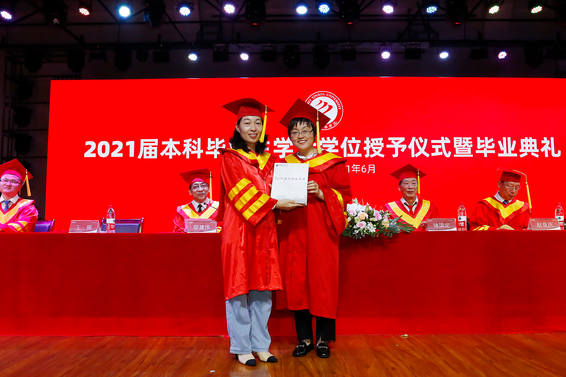 接着,2021届校友花名册移交仪式举行。“从今天起,你们在新华园有一个新的身份——最年轻的校友。从前,母校见证你们成长,今后,你们就是母校的名片。”