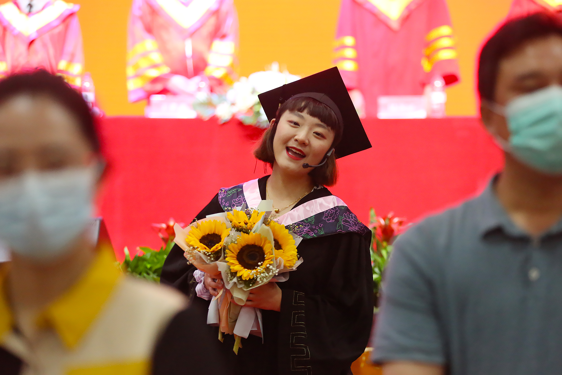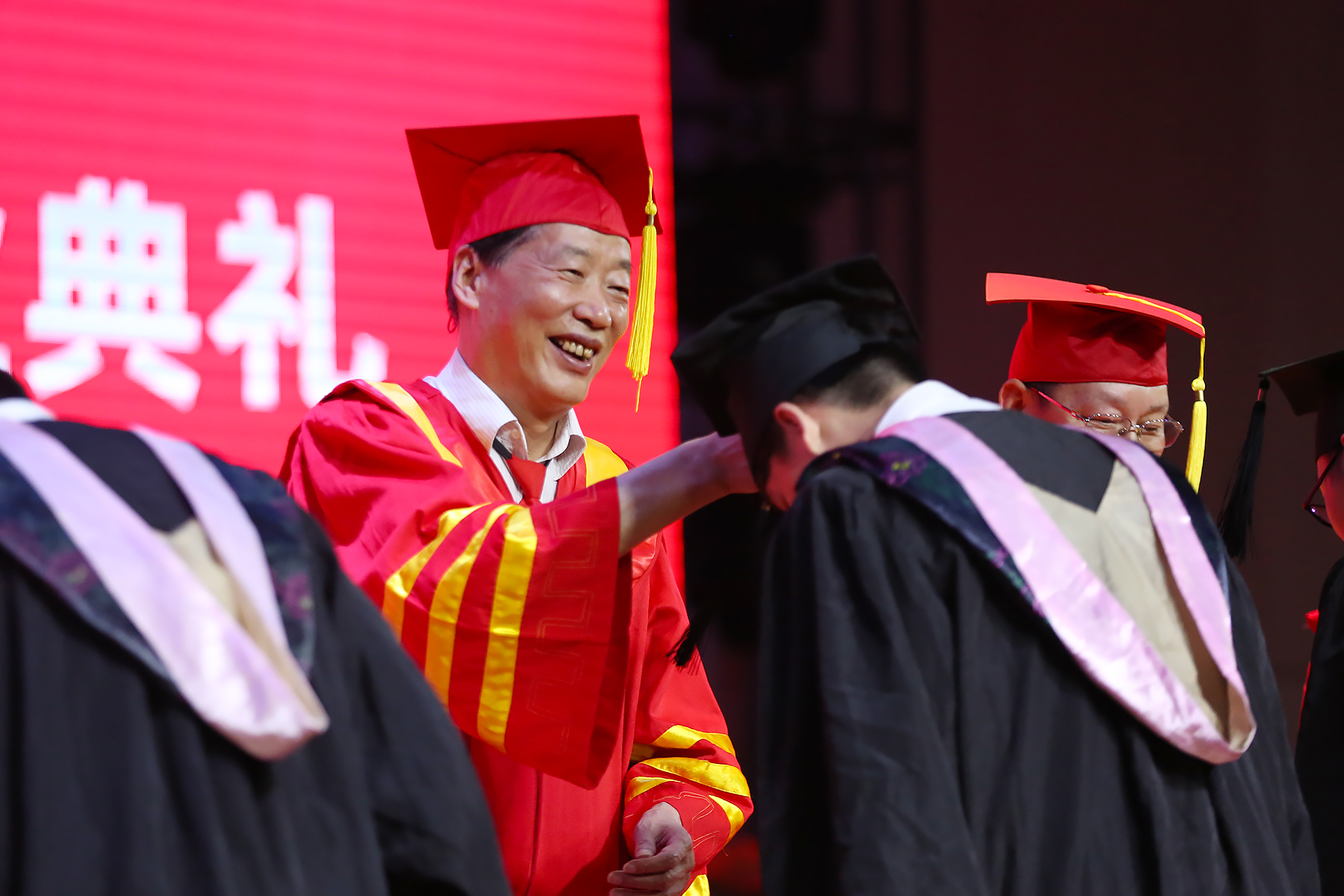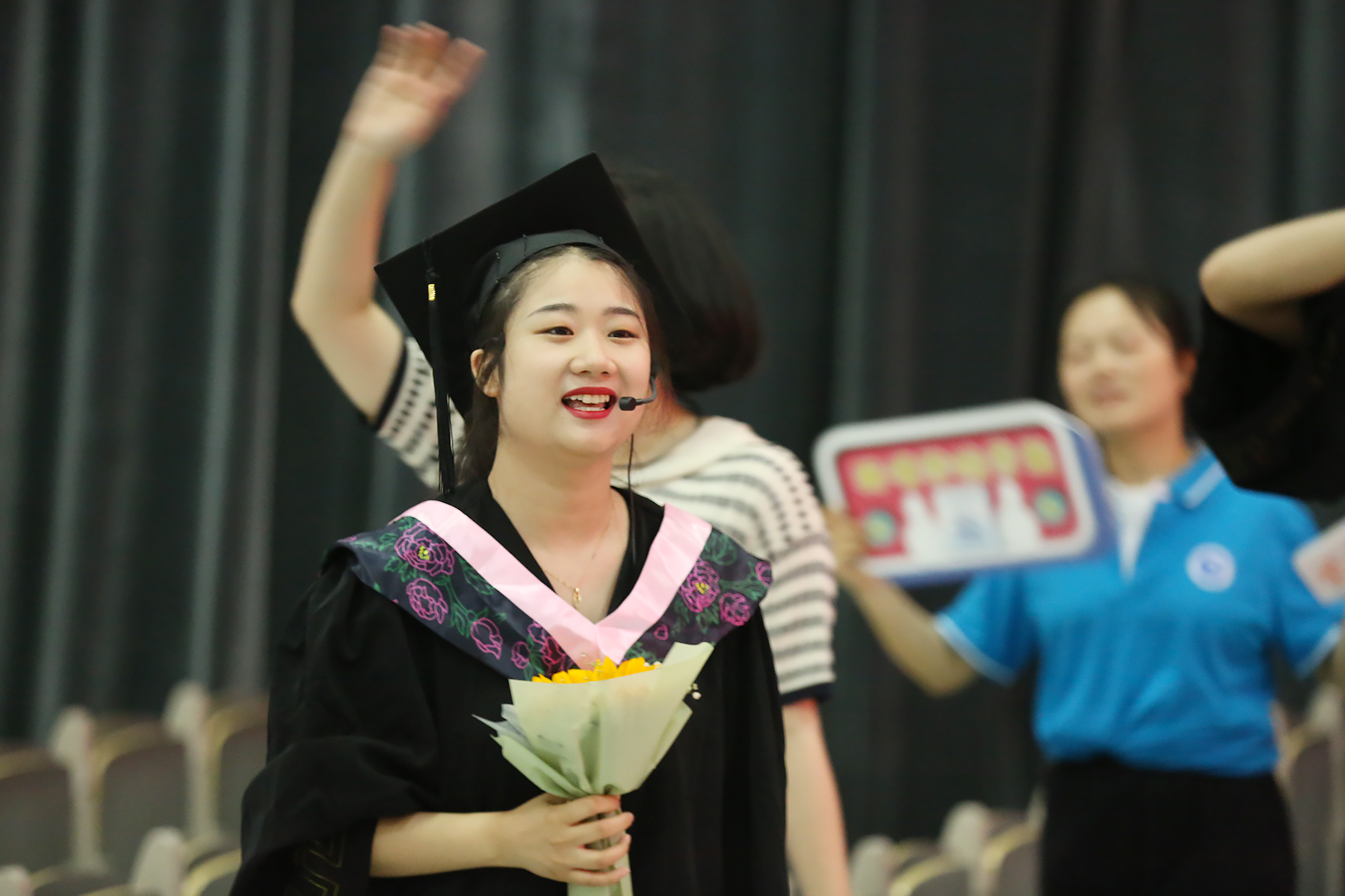 典礼结束,校领导、教师和辅导员老师目送毕业生离场,与毕业生挥手告别。光荣与梦想,欢笑与泪水,激动与不舍,万千心绪都交织在了这最后一次的毕业相聚。