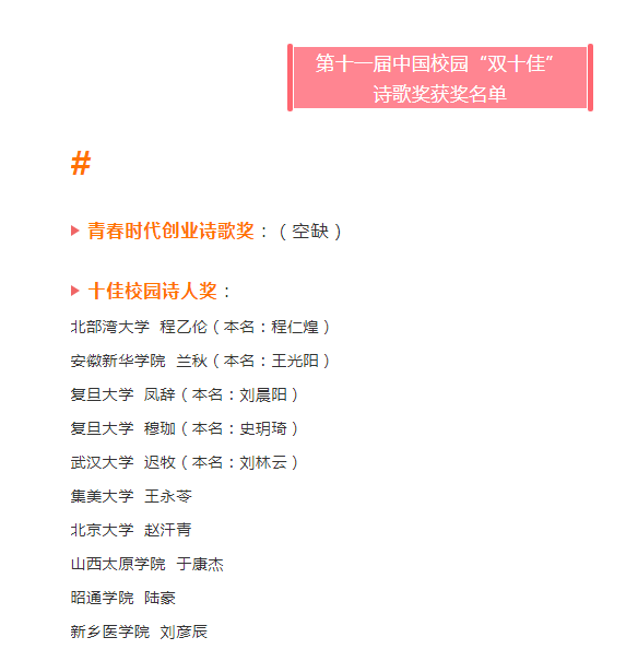 我校学子在第十一届中国校园“双十佳”诗歌奖斩获佳绩