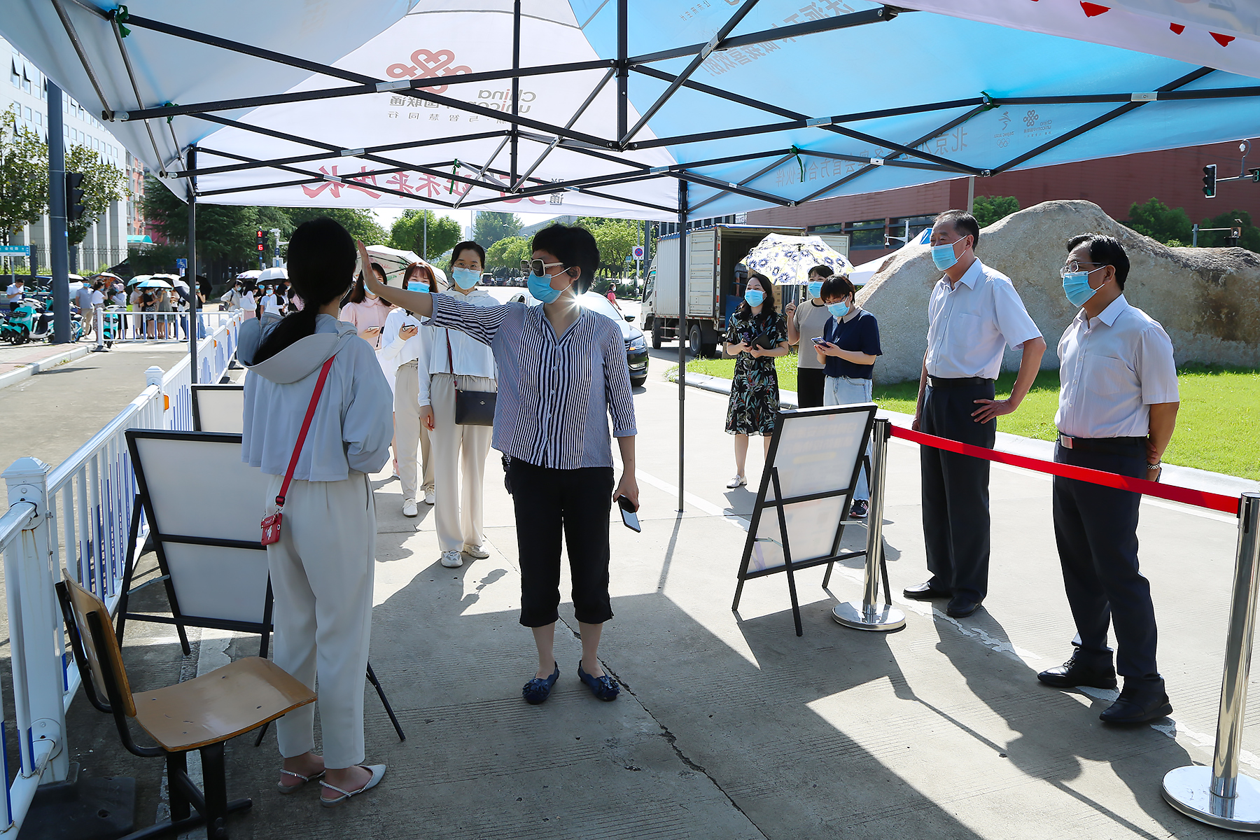 本网讯(通讯员:王亚君 摄影:翟漱文)为科学规范地开展新冠肺炎疫情防控工作,保证学生返校当日和新生开学后的各项工作有序开展,切实保障广大师生的生命安全和校园稳定。根据省委省政府、教育厅相关防控要求,8月25日上午,我校组织开展了2021年秋季开学疫情防控演练。校执行董事长储国定,省督导专员、校党委书记邸建伟,常务副校长王丽,副校长贺行佳,校长助理邵玲一行带队到场检查指导。