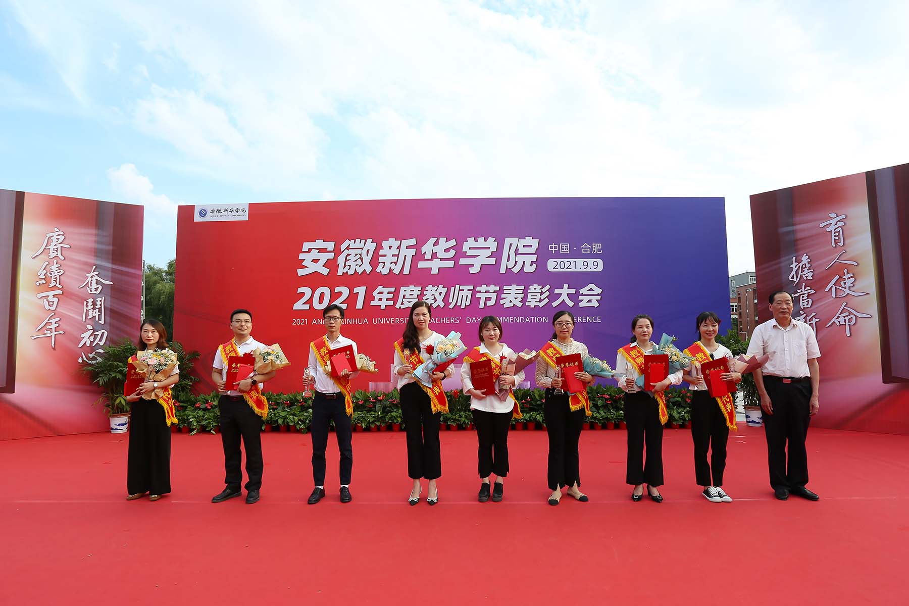 本网讯(通讯员:王亚君 摄影:翟漱文、融媒体工作室/王振 )立德树人育英才,桃李芬芳谱华章。9月9日下午,我校举行“赓续百年奋斗初心,担当新华育人使命”2021年度教师节表彰大会。大会表彰了国家级学科竞赛优秀指导教师、省级“教学名师”、省级“教坛新秀”、省级“教学竞赛优秀教师”、省级“优秀课堂主讲教师”、安徽新华学院“教书育人楷模”“明德奖”获得者。集团及学校领导,各职能部门、二级学院的师生代表们参加了大会。