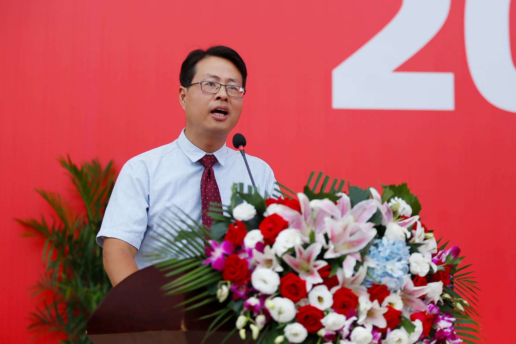 校青年志愿者联合会主席张冠同学作为老生代表发言:“新华园是梦想生根、发芽和开花的地方!让我们共同恪守‘厚德、求真、博学、创新’的校训,拿出‘天生我才必有用’的信心,‘吹尽黄沙始到金’的毅力,‘直挂云帆济沧海’的勇气,抓住新的机遇,迎接新的挑战。”