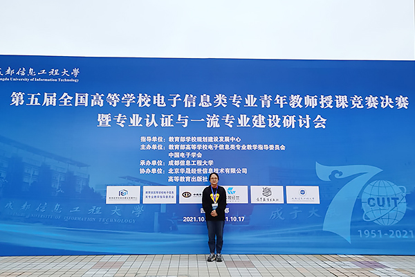 本网讯(通讯员:陈璟)10月15日-17日,第五届全国高等学校电子信息类专业青年教师授课竞赛决赛暨专业认证与一流专业建设研讨会举行,我校电子工程学院/智能制造学院教师彭霞、通信系副主任姚玲参加会议,彭霞在此次大赛中荣获三等奖。