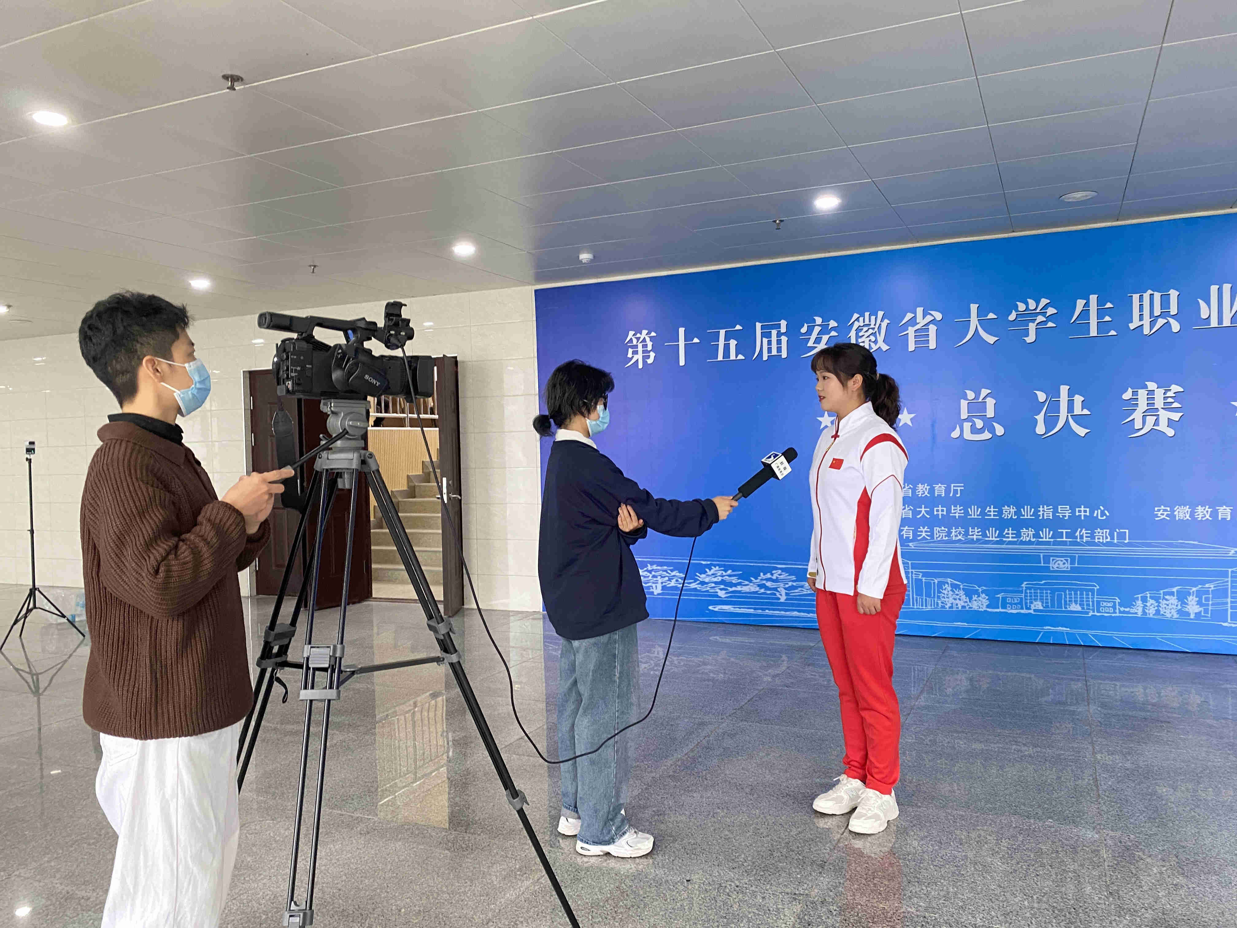 大赛结束后,我校谈震同学接收蚌埠广播电视台的采访报道。