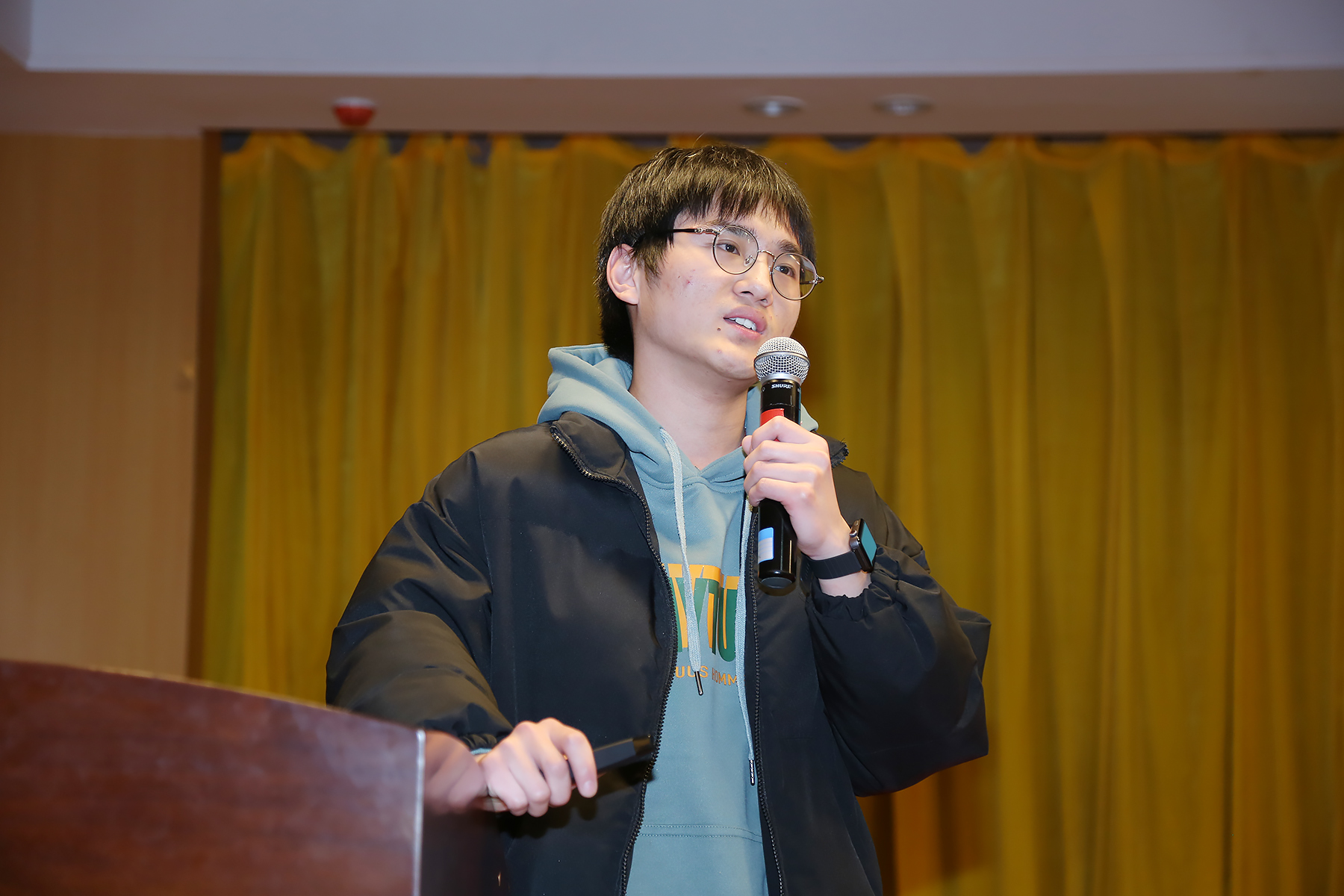 杨培正作为2018级考研学生代表上台发言,他表示将拿出披荆斩棘的勇气,以最饱满的热情和最饱满的斗志,努力拼搏,奋勇向上,取得考研的胜利,同时也对学校领导老师的关心与支持表达了衷心的感谢。