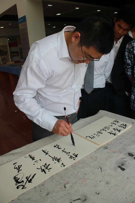 本网讯(学生记者 华云)4月17日,合肥久留米友好美术馆在我校开展馆藏书画珍品高校巡回展安徽新华学院站的展览活动。上午10点,展览活动开幕式在图书馆举行,副院长倪征,合肥市委宣传部副部长、文联党组书记陈飚,合肥文联副主席刘晓明等出席了开幕式。