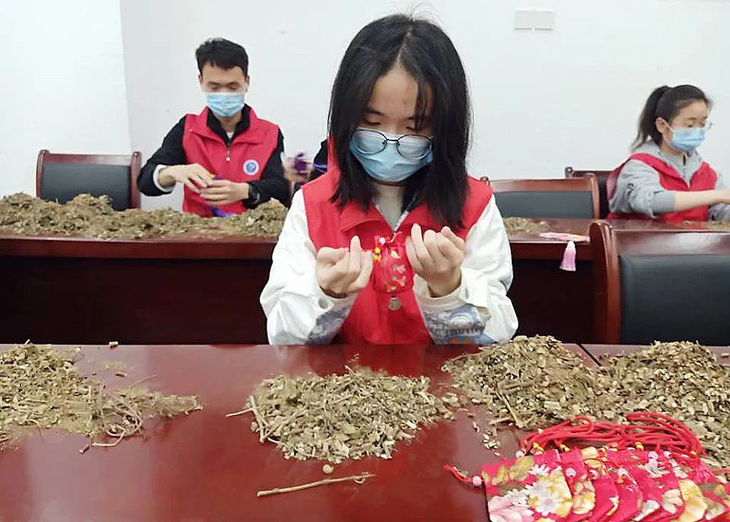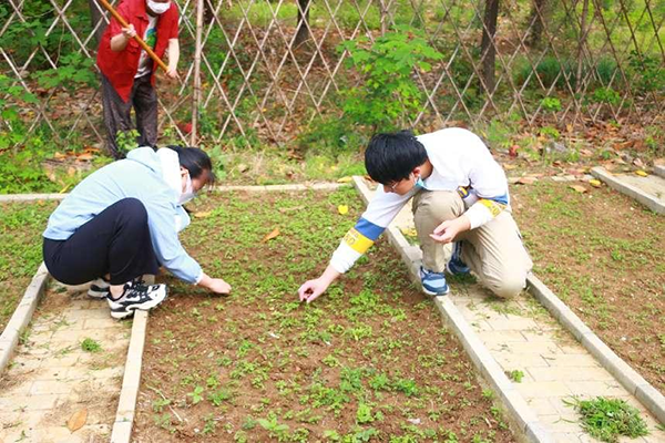 强化劳动教育实践效果,将所学知识转化为劳动成果。在疫情防控常态化的背景下,药学院学子们积极发挥药学专业特长,自制中药防疫香囊,送给守护校园最可爱的人。防疫香囊由多种天然中药材配制而成,藿香、薄荷、广木香、苍术、白芷等有芳香化浊、驱瘟避秽的特点,可以达到“辟邪”“化湿” “防病” “强身”的效果,能够醒脑辟秽,理气化湿。香囊虽小,爱心犹大,手留余香,情暖人心。城市建设学院风景园林专业的同学们和入党积极分子们将专业所学呈现于园林基地建设。在专业教师李屹楠的指导下,同学们分组进行场地开荒、场地整理、种子播撒、分组认领等项目,活动中同学们认真听讲,积极动手,协同配合, 充满欢乐。园林专业学生又针对性地对花卉植被进行养护和管理,期待它们在历经暮春、盛夏金秋之后能绚烂成长,结出果实。