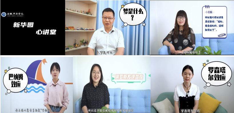 为提升学生探索内心的自我觉察力,扩大心理健康教育知识普及,心理健康教育中心筹备推出“新华园 心讲堂”系列心理知识微讲堂。首批“心讲堂”嘉宾邀请了我校心理健康教育中心五位心理咨询师,他们以生活中的心理学效应为主题,通过趣味讲解、云端传播,用“小话题、大道理”的方式吸引学生关注,进一步扩大心理健康知识的宣传力。