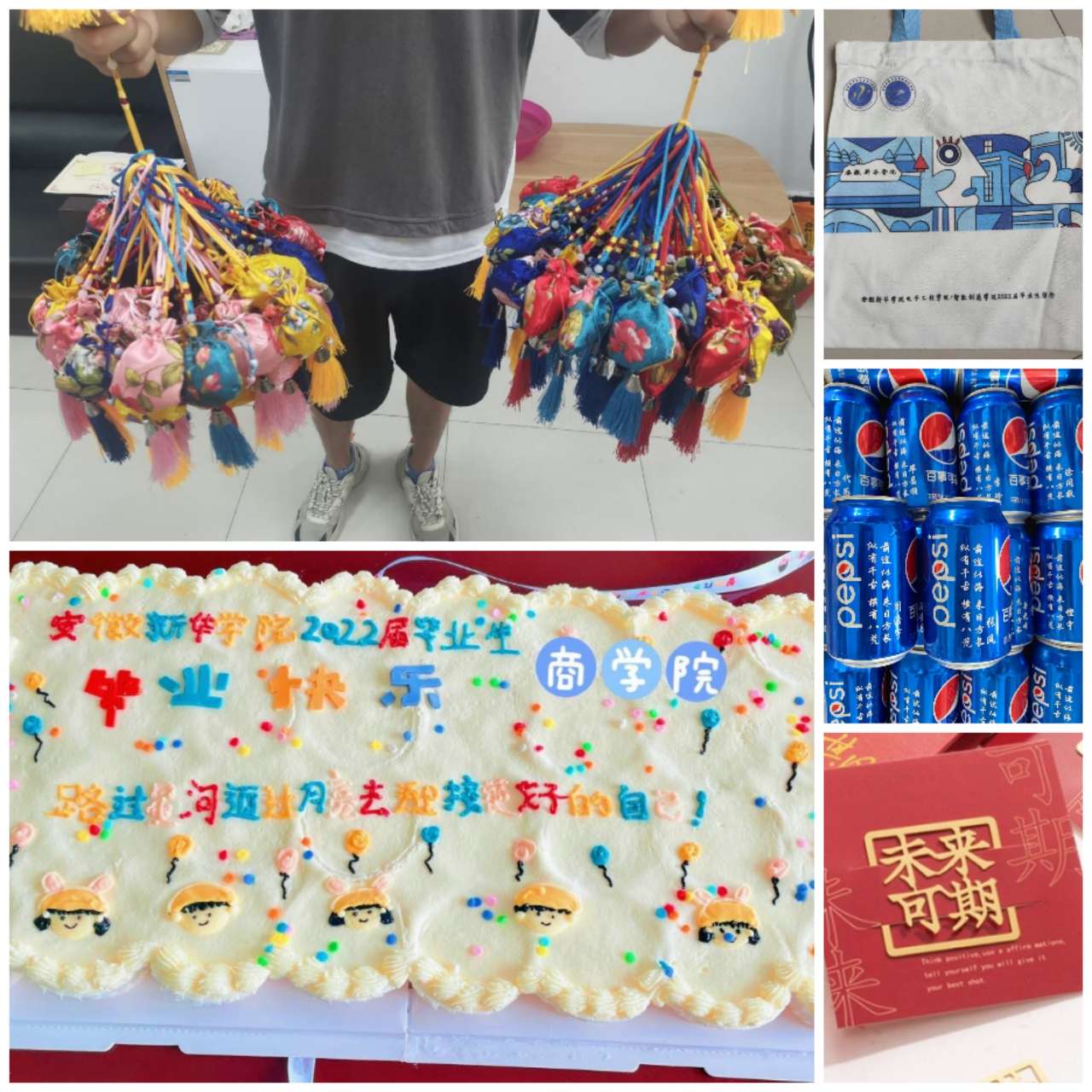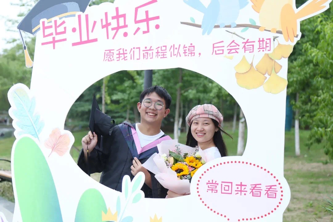 为离校学生带来关爱,为青春学子送去祝福。各二级学院为欢送毕业生顺利毕业,在返校前夕,为他们制作创意打卡点,定制精美的学院纪念品,让毕业氛围更加温暖。毕业礼物更具特色、形式多样。返校之日,毕业生们感受到来自母校的心意,内心激动又满怀不舍。母校祝愿毕业生放飞梦想,畅游未来!