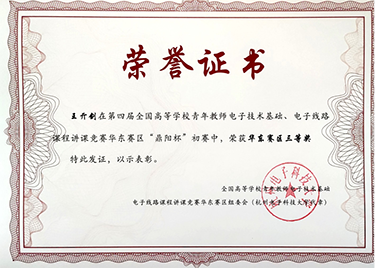 我校教师在第四届全国高等学校青年教师电子技术基础、电子线路课程讲课竞赛中荣获华东赛区三等奖