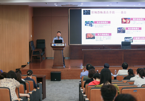 指挥室民警聂军介绍了反恐防暴相关知识并与参训人员进行了互动交流,有效增强了大家的知恐、识恐、防恐、反恐能力水平。