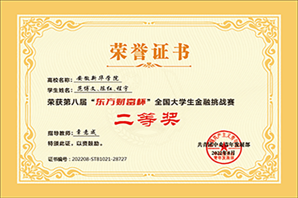 喜报!我校学子荣获第八届“东方财富杯”全国大学生金融精英挑战赛全国二等奖