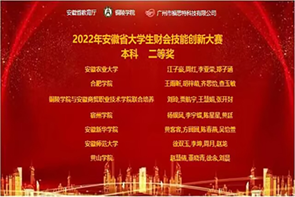 我校学子荣获2022年安徽省大学生财会技能创新大赛二等奖