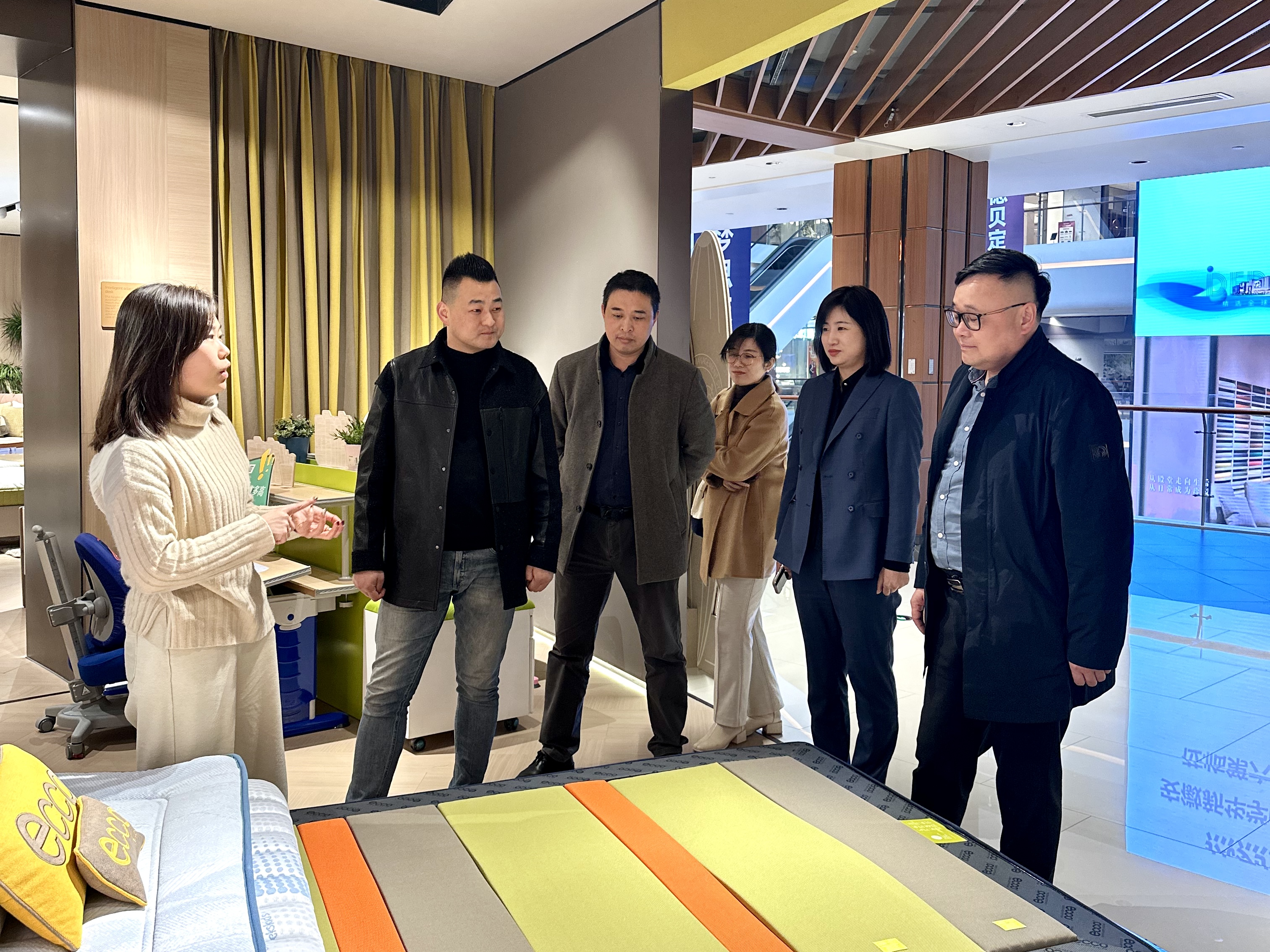 走访交流中,许总对学校一行表示热烈欢迎,深情回忆了在学校求学时所得到的关心和指导,特别是有的老师对他的鼓励和要求他一直铭记于心、受益匪浅。许总带领大家走访了入驻品牌商家并详细介绍了企业发展历程和未来发展愿景,第六空间以“国际、时尚、艺术、生活”为商业定位,建立以顾客为中心,产品力、服务力、体验力三位一体的新商业模式,力争打造中国高端家居最佳服务平台。
