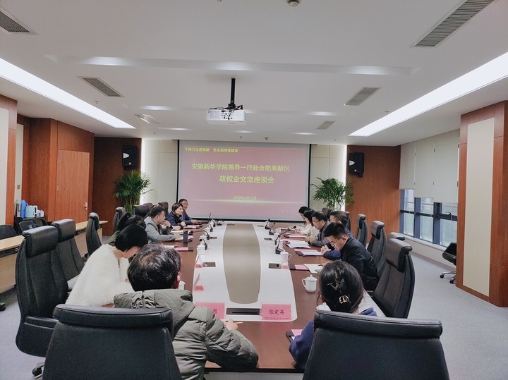 随后在合肥国际人才城举行了政校企座谈会,张力首先代表合肥市高新区对戴昕一行表示欢迎,并介绍了近年来合肥高新区的发展情况及人才需求,重点阐释了园区成为新兴产业发展高地与创新资源集聚高地的发展情况。戴昕对各企业长期以来对学校建设发展和就业工作的支持表示感谢。随后介绍了学校发展情况,近年来在专业建设、人才培养、师资队伍建设等方面上取得的成绩,并邀请在座企业代表到校参观、举办双选会。
